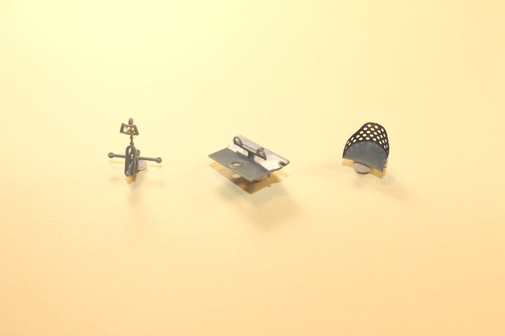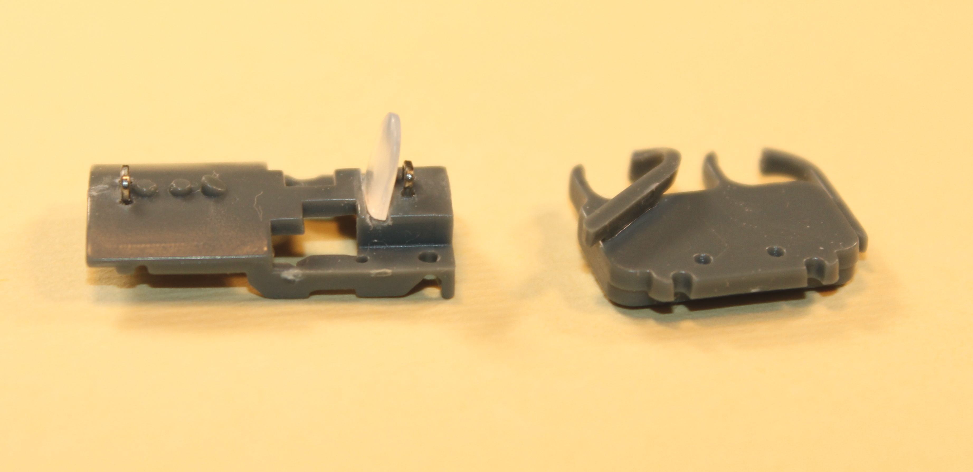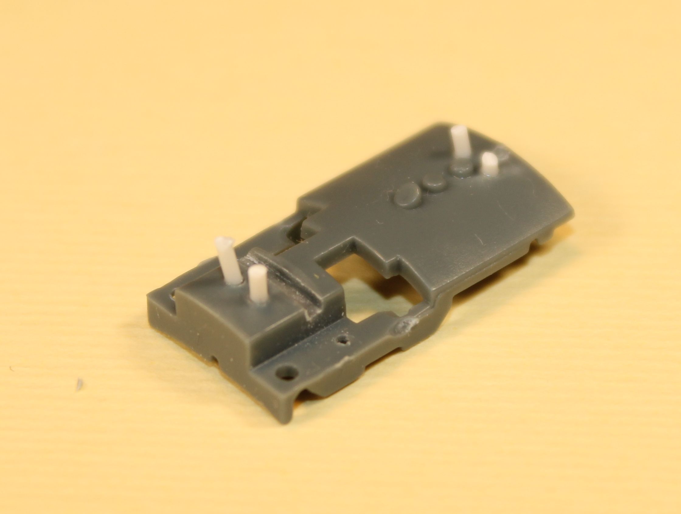 на детали № 1 планируется срезать пластиковые толкатели и просверлить отверстия под проволоку № 3. На делали № 2 сверху обточить деталь до плоскости. приклеить по две детали №4 с заранее просверленными отверстиями. в результате на каждом цилиндре получится по две детали №2. Либо как альтернатива этому геморою - не клеить деталь №2, а расплющить в пассатижах кончик проволоки, согнуть ее под угом 90 градусов и получить деталь № 5 и клеить ее по 2 штуки на цилиндр.