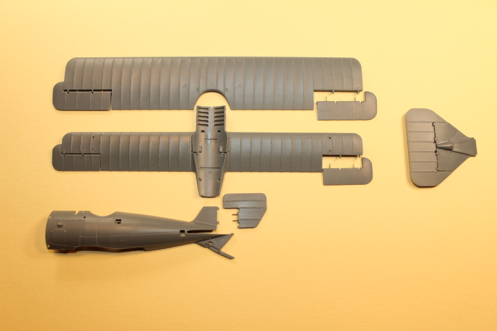 на нижнем крыле засверлил отверстия под установку буклей, и уже хотел начать вклеивать детали, но остановился. сначала надо сделать отверстия под штифты для установки отклоняемых поверхностей, поэтому это только примерка конструкции.
