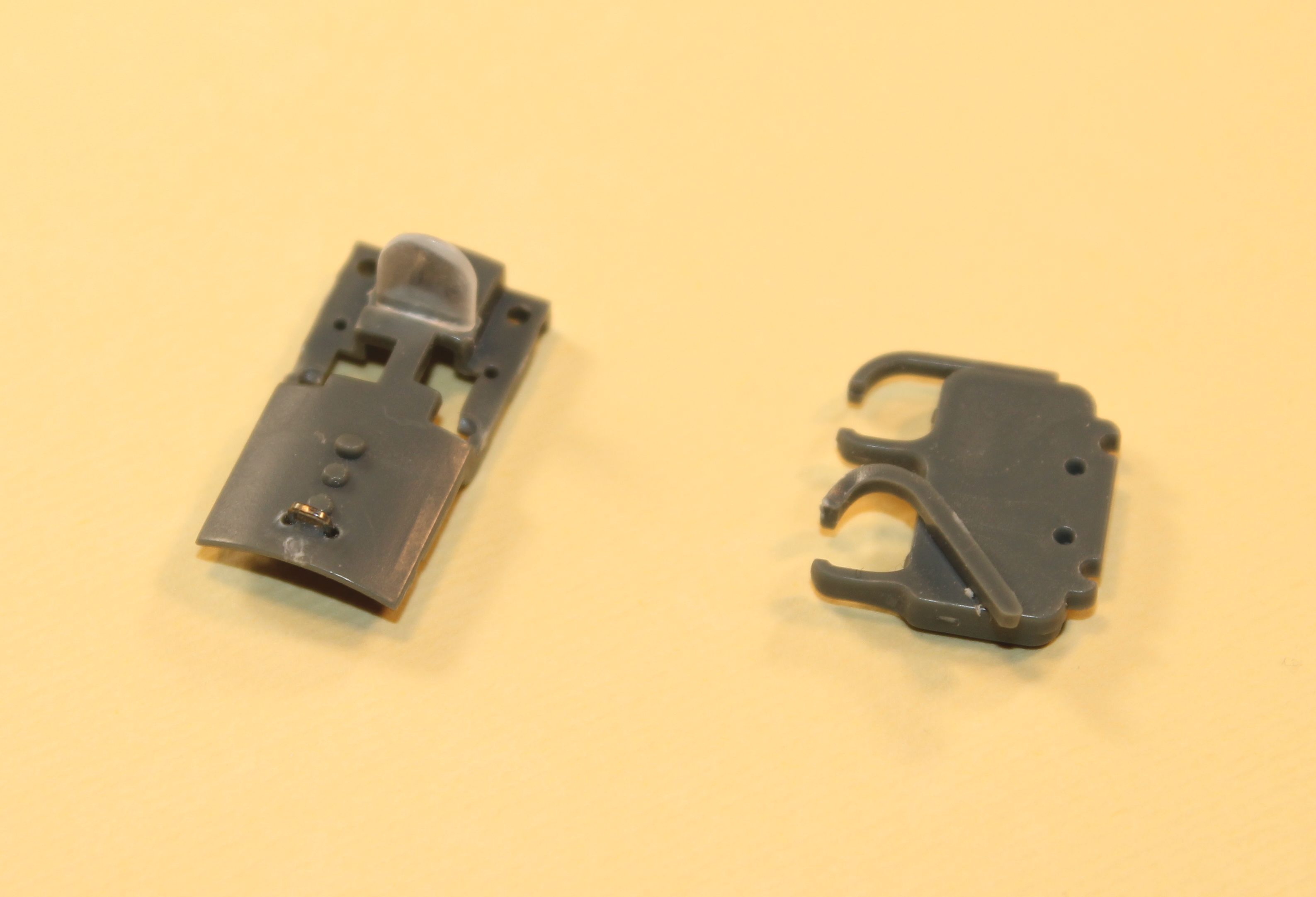 Очередные сборки: патронная коробка, с рукавами подачи ленты и рукавами сбора пустой ленты склеилась идеально, пулемет встает в нее как родной. Вторая сборка капот, надо сказать что когда я смотрю на инструкции по сборке моделей я часто тихо офигеваю и просто не могу понять как это должно держаться. По версии Eduard (а) деталь РЕ6 может быть не только приклеена, но и удерживать потом натяжение двух нитей, я этому не поверил и вклеил скобы согнутые из скоб для степлера. То что пленка будет держаться как уверяет Eduard, тоже не поверил и поэтому проточил паз и из кусочка пластика от коробки для CD выточил свой вариант стекла.