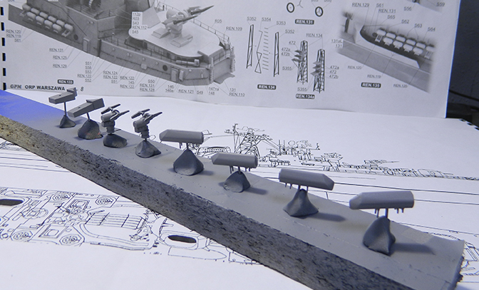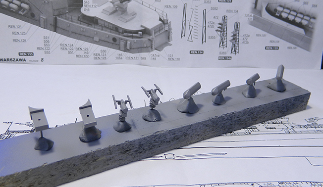 Поначалу углубления были, но затем я их зашпаклевал. Опыт показал, что чем сложнее деталь тем худе для работы в дальнейшем. Все навесное будет приклеиваться отдельно. Люмы будут накладные из фототравления или оракал.