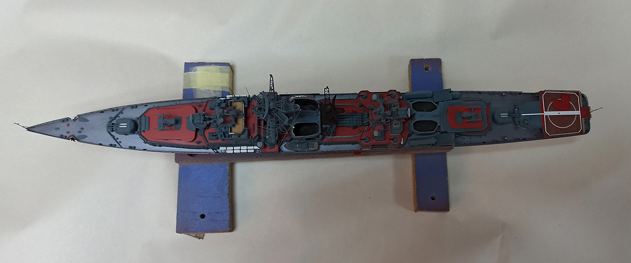 Продолжение. Первый ярус надстройки, трубы, мачты и вертолетная площадка.