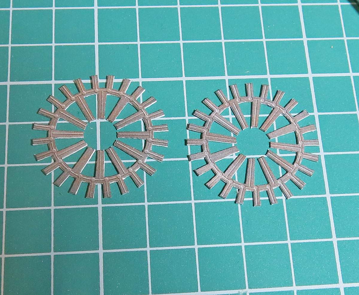 А тут уже поделены на кучки 3+3 и отформованы изгибом в 2-х плоскостях - готовы к сборке