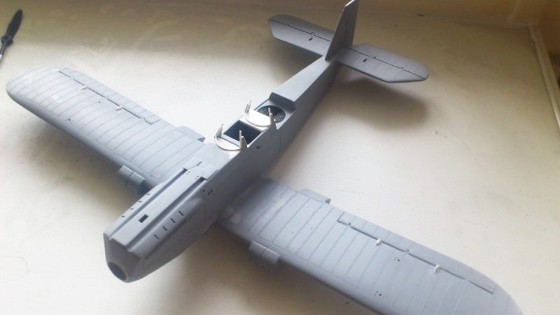 Продолжаю. Началась первая попытка строительства, тут буду краток. Для модели донором выбрал новинку от AMG Р-5 внешне они похожи, но ТШ-2 значительно меньше по всем размерам. С фюзеляжем проблем не возникло, разрезал за капотом сигмент и снова склеил, потом изготовление кабины, придание капоту нужной формы, изготовление хвостового оперения и так далее. Серьёзная возня случилась с крылом. Его пришлось резать вдоль и поперек ведь оно ухе и короче, а так как оно даётся из двух частей пришлось помучиться. В результате нижние плоскости получились, а вот верхнее крыло вывернуло винтом, разобрал и склеил по новой, положил под пресс. После чего оно оставалось нормальным пару дней потом та же история. Пришлось взять крыло от древней советской модели Ан-2 там "дубина" будь здоров, монолит шести миллиметров. Придал форму, сточил до четырёх мм и запрофилировал. На этом этапе стройка остановилась.