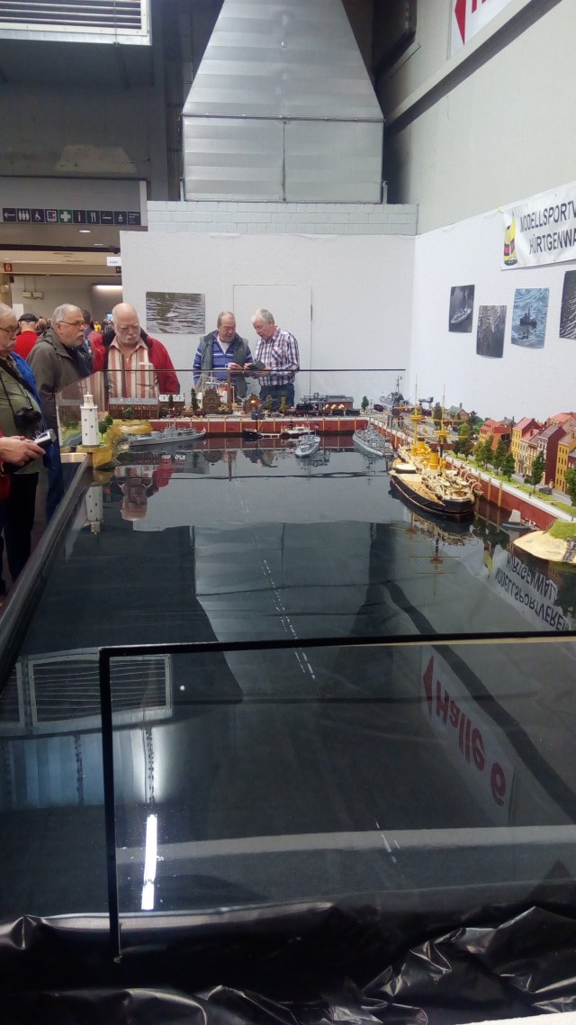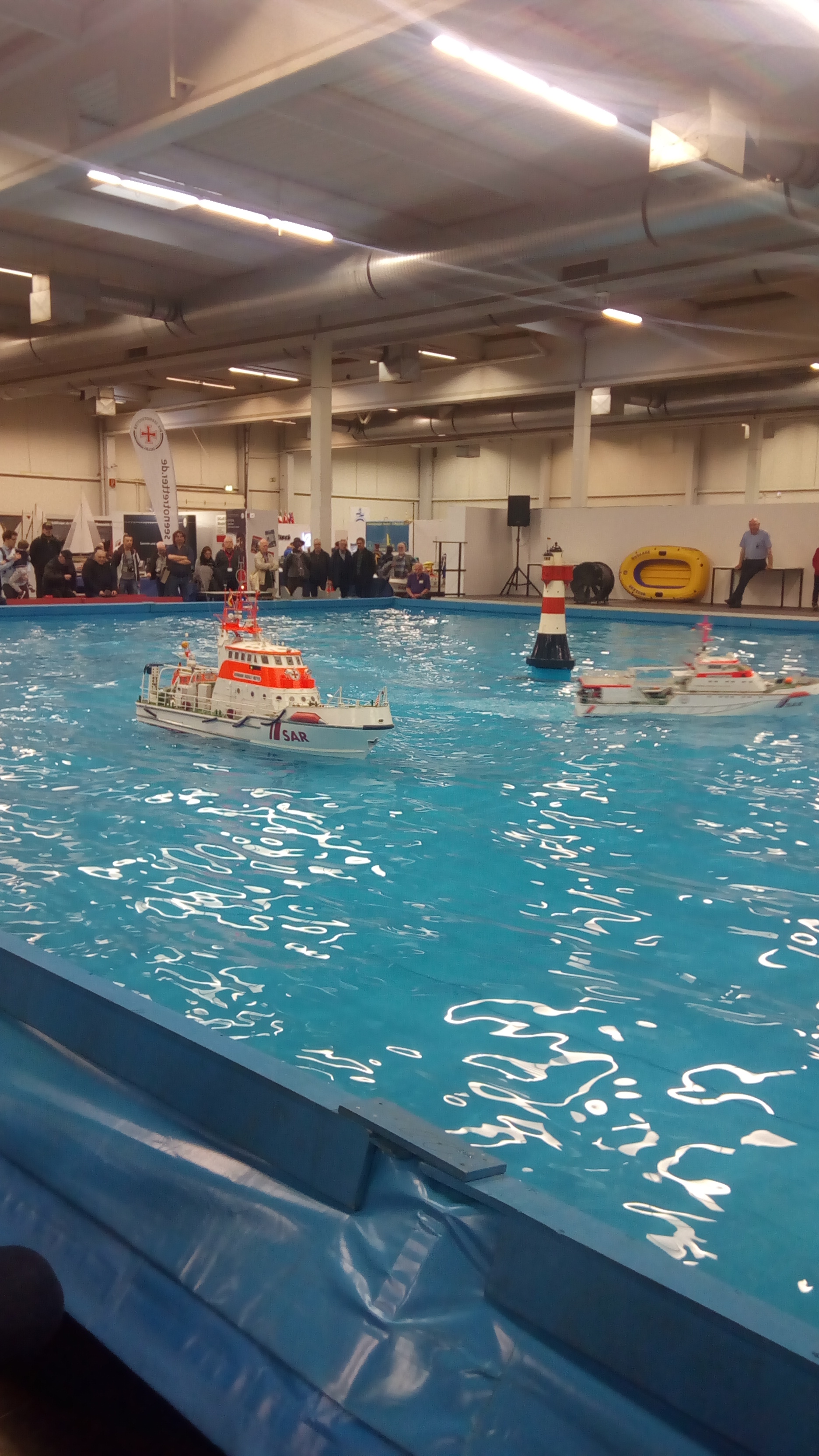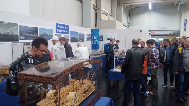 Намного больше нашего Крокуса. Всего восемь огромных залов (сейчас пристраивают ещё два). Флоту был выделен отдельный зал с огромным бассейном посредине, где постоянно в течение всех четырёх дней, запускались всякие разные водоплавающие модели. Но всё было чисто в выставочном варианте – никаких соревнований не проводилось.