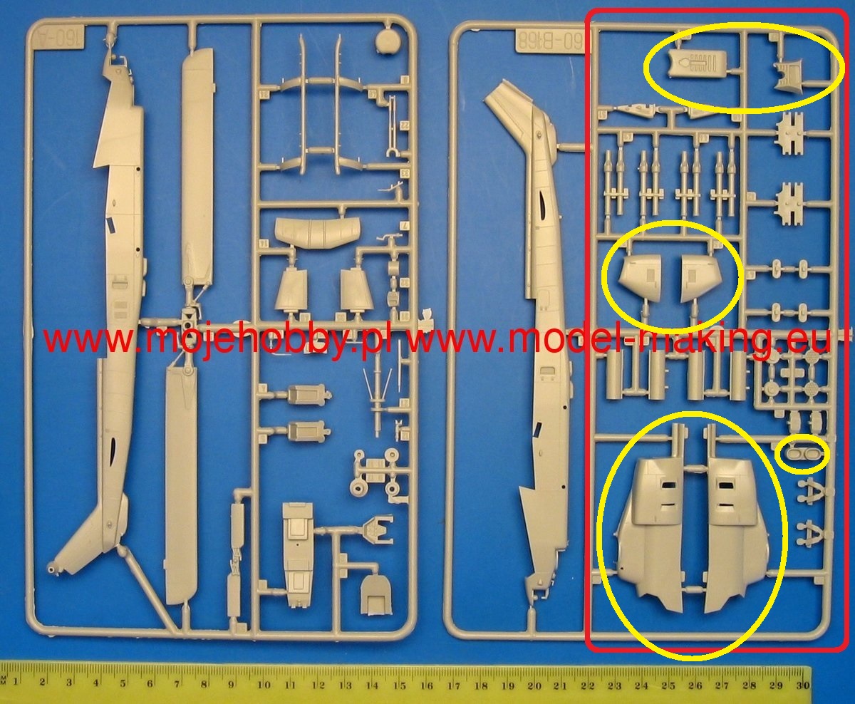 Нужны детали от Italeri 0168 Bell AH-1T Sea Cobra 1:72( выделены желтыми кружками). Куплю... можно целиком набор или поменяю на АН-1W Super Cobra...