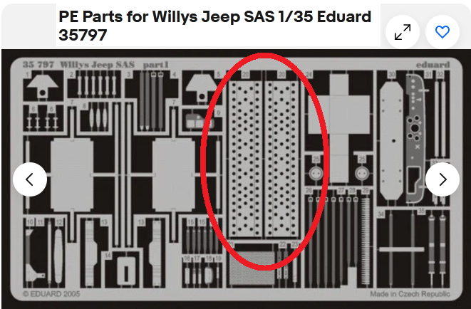 Добрый вечер. Ищу деталь А21 из набора Tamiya British special air service jeep в количестве ДВУХ штук.Или аналог в виде травления от Эдуарда, также ДВЕ штуки.Либо какие-нибудь аналоги этих деталей