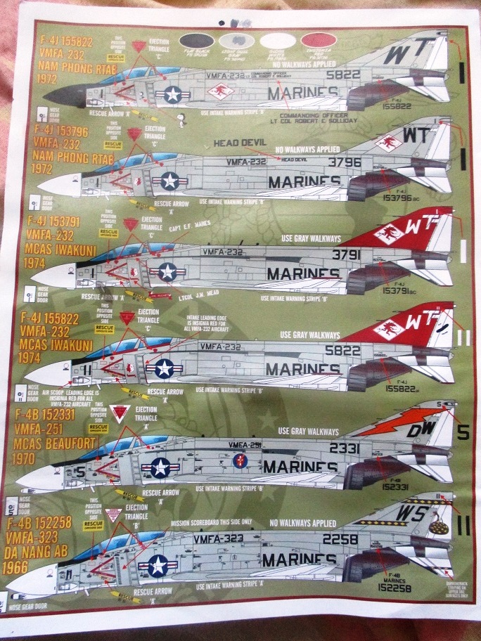 Никому не нужны декали на Фантом в 48-м масштабе? Также прилагается цельное неиспользованное остекление. Один лист декалей от самой Хаси, а два листа от Картографа. Я делал вариант VMFA-232 Red Devils, все остальное уже не нужно. Инструкция от Хаси также имеется. Интересует обмен, вплоть до какой-нибудь модели самолета-вертолета в 72-м масштабе.
