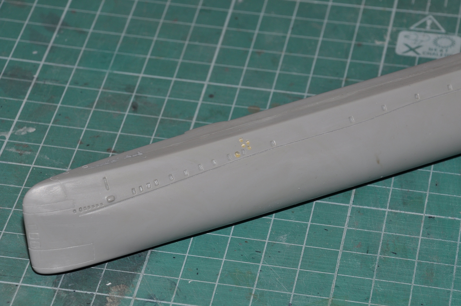 Есть такое дело. Идеально сделать не получилось. даже несмотря на значительное уменьшение толщины пластика в районе иллюминаторов. Перед грунтовкой еще раз посмотрю, так сказать на свежую голову, попробую ножом порихтовать.