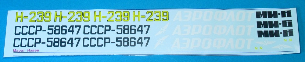 Этот проект - "на троих". Первый участник - Ми-6 от "Амодел", предоставленный мне моим другом, второй участник - декали от Алексея Бацких (за что ему большая благодарность), а третьим буду я (в основном на раздаче, принести-унести).