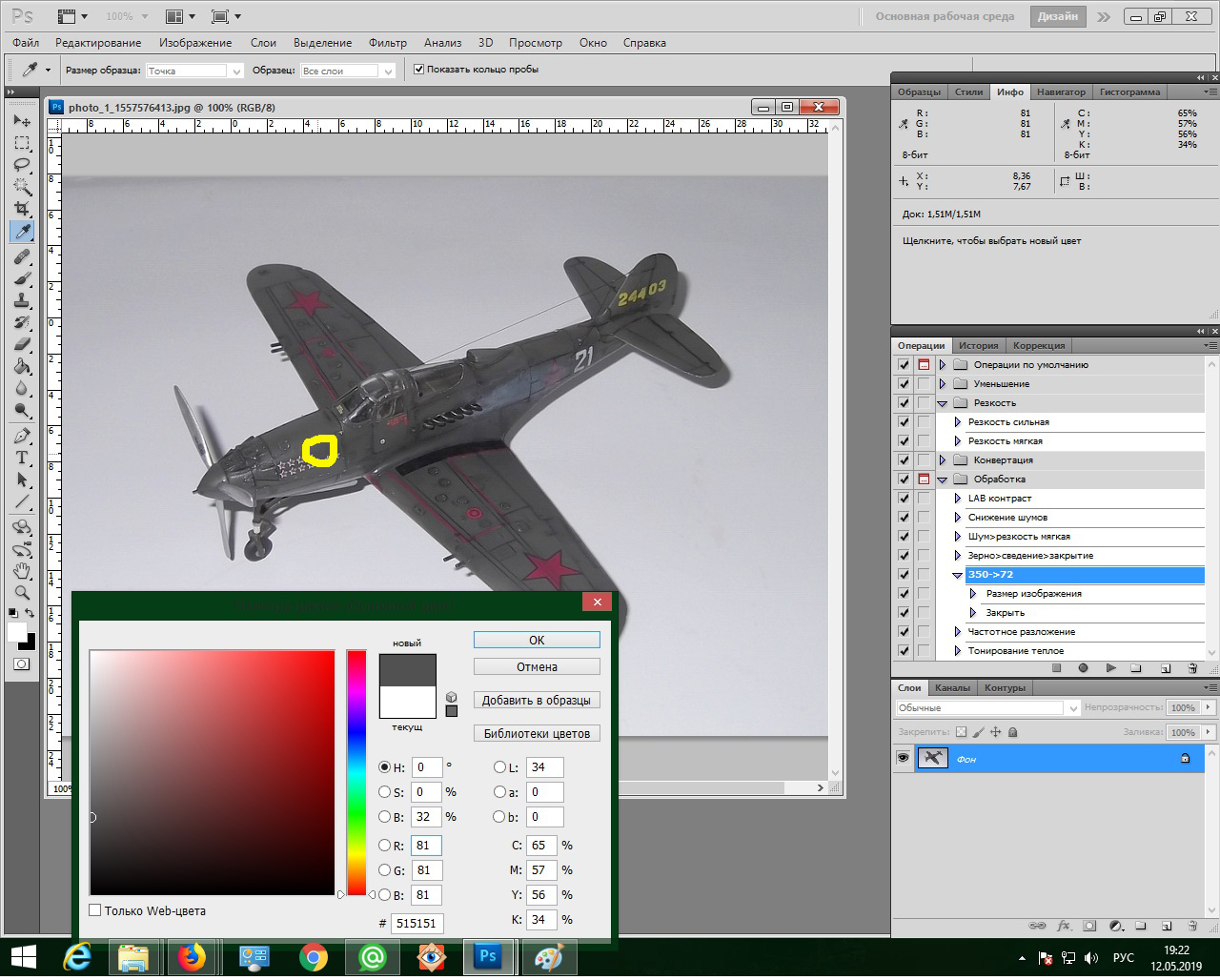 Оценивал я готовую работу по выставленным в галерее фотографиям. В стройке цвета не сильно отличаются от представленных в галерее. Цвет мне показался совершенно не правильным, о чем и написал. Это мое мнение и я имею на него право. Если вы считаете, что самолет должен быть серым с зеленоватым оттенком - это ваше мнение и вы так же имеете на него право.