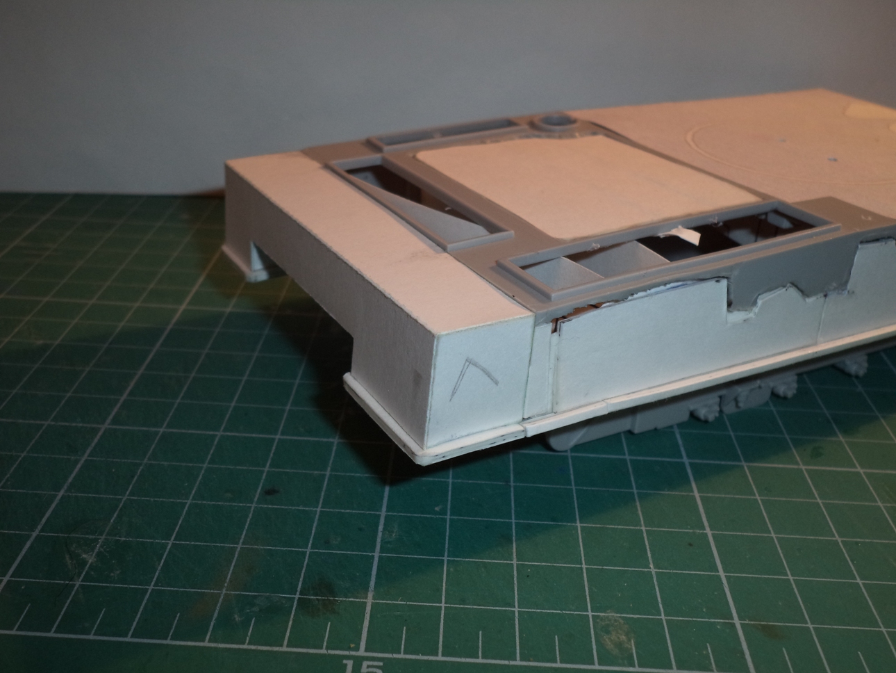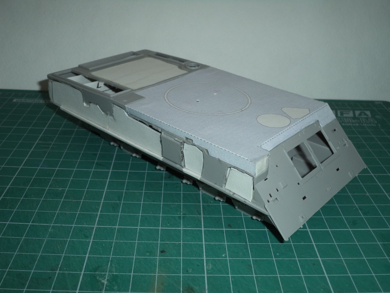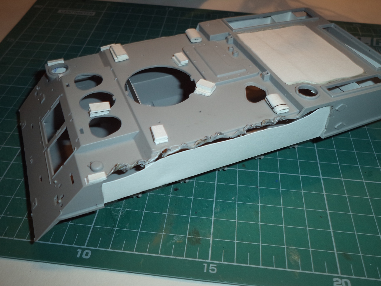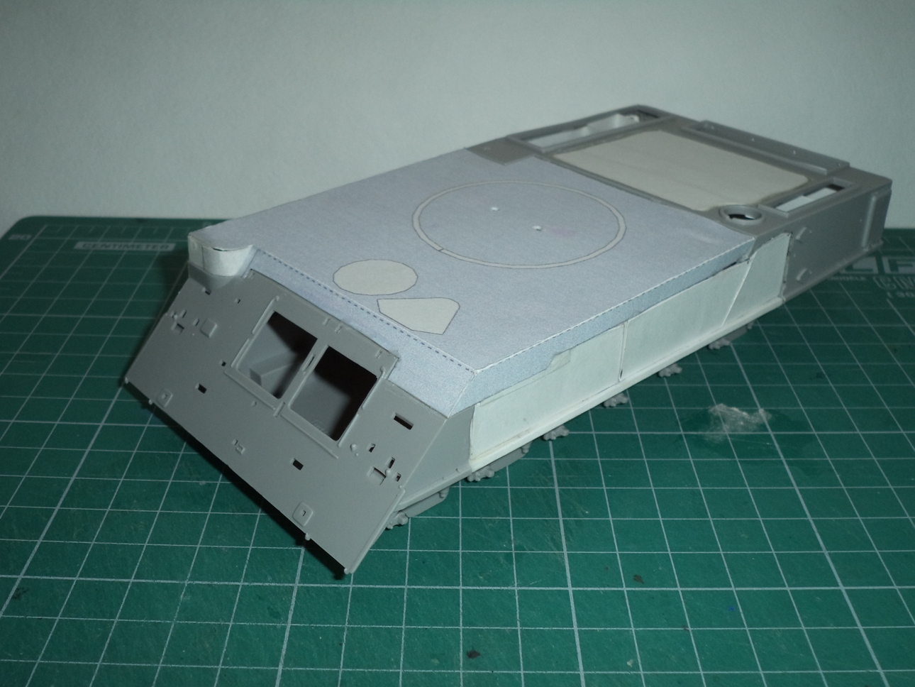 Из бумаги сделал крышки отсеков МТО и аппаратуры, срезал 3 выштамповки на НЛД и сделал 4