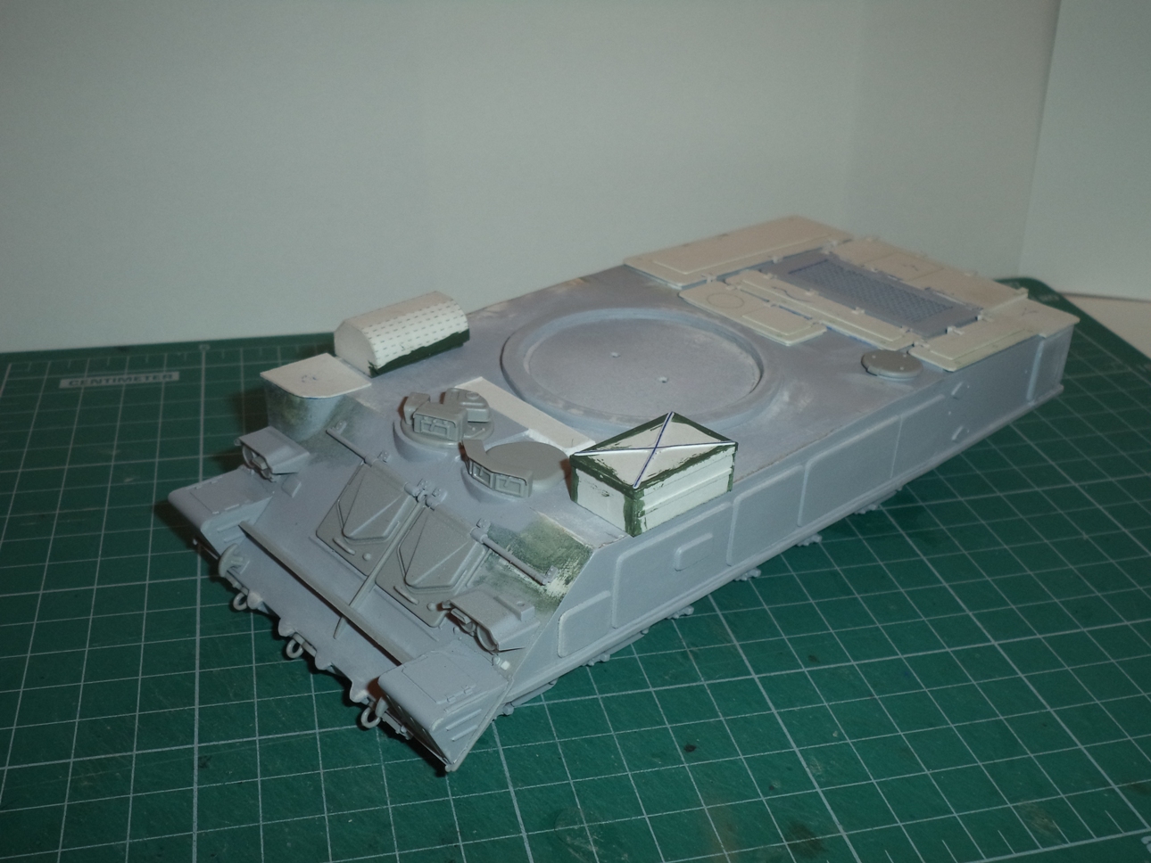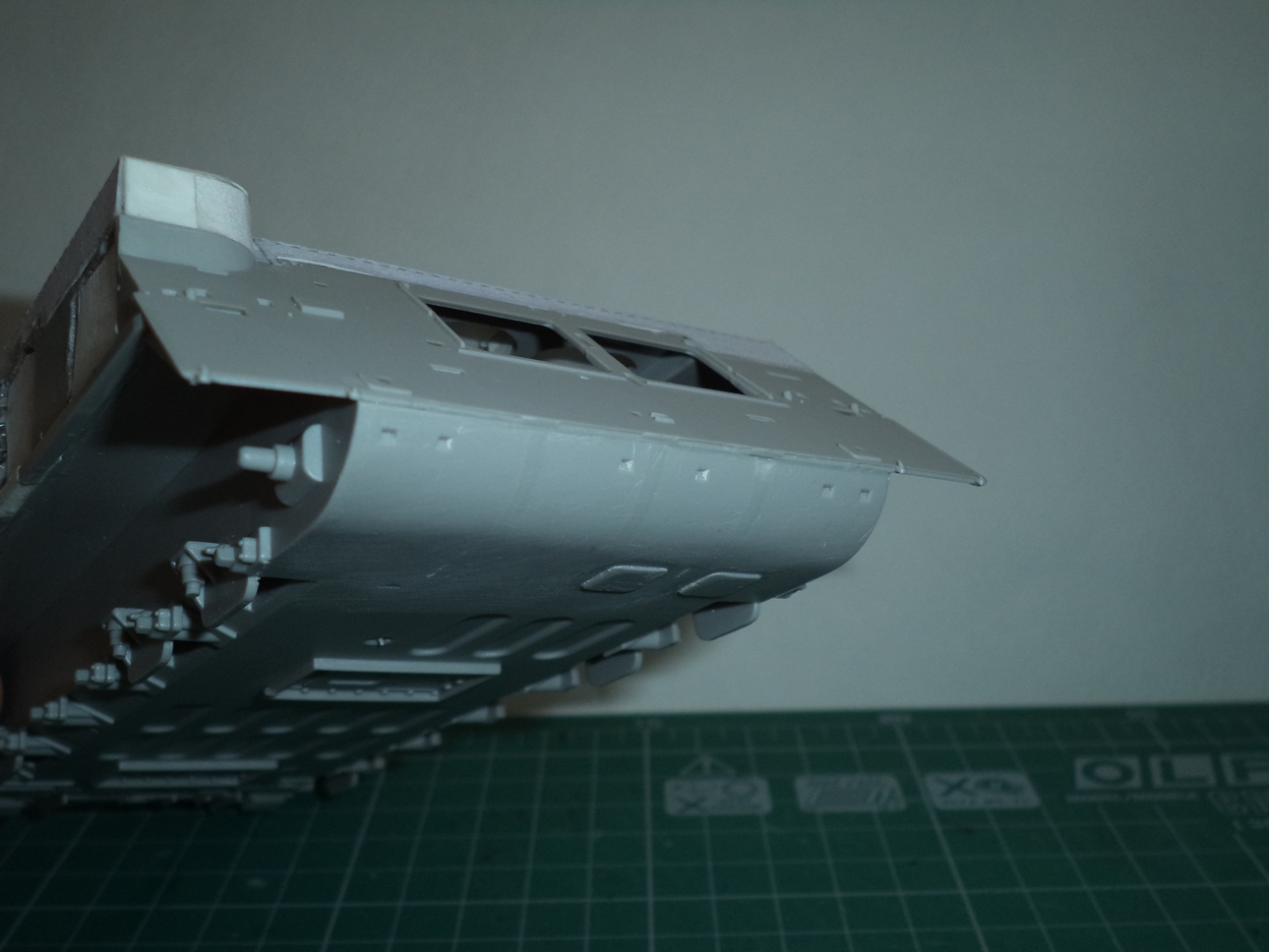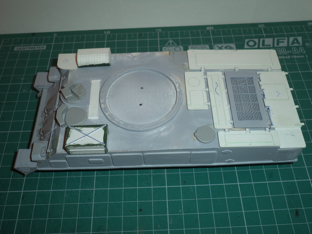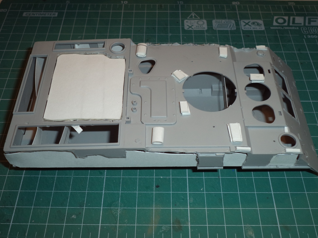 Из бумаги сделал крышки отсеков МТО и аппаратуры, срезал 3 выштамповки на НЛД и сделал 4