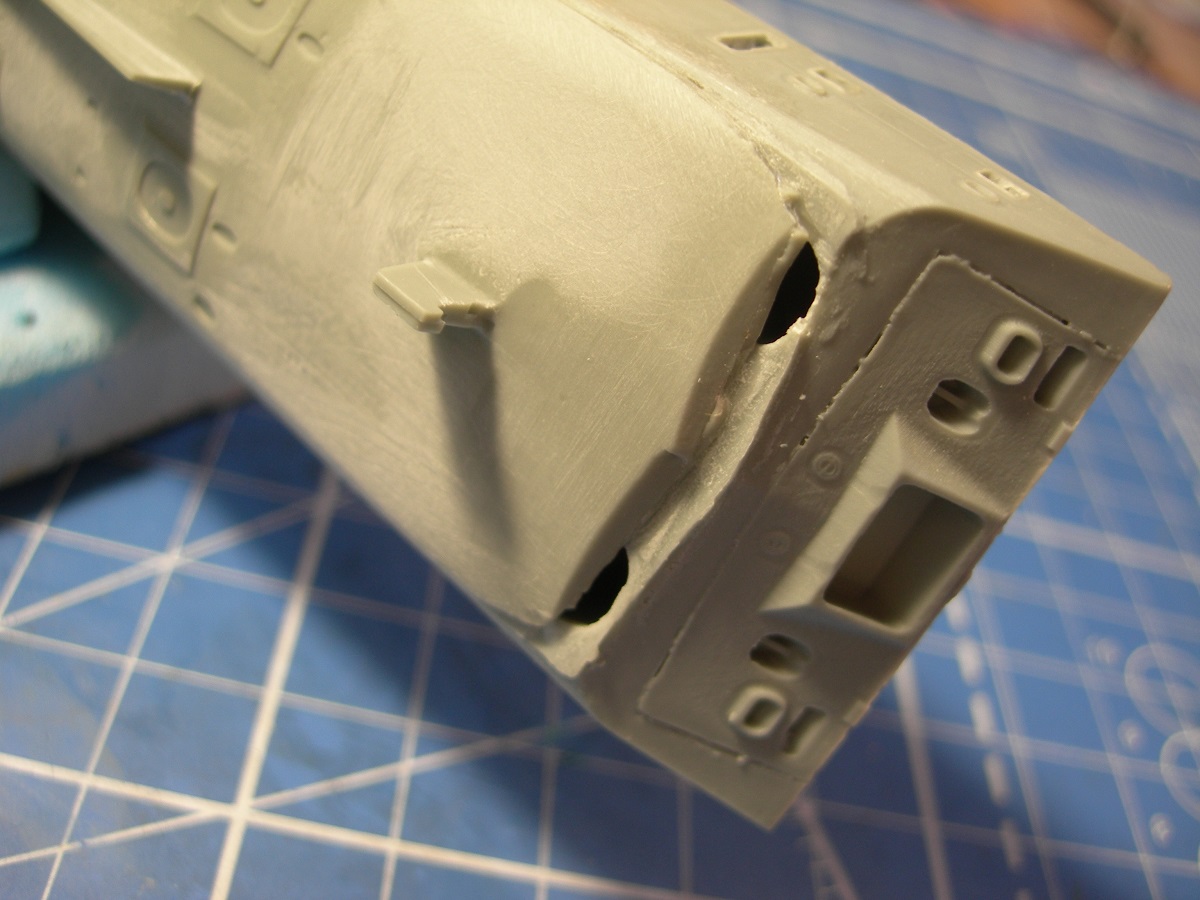 Эх, поздно обратил внимание на эту стройку. От меня только если на будущее совет (как от спеца, собравшего не одну сотню разных смоляных моделей) - шпаклевать двухкомпонентной Body Fine, полиэстеровая шпаклёвка продаётся в автомагазинах, баночки 250 г за 280 руб. хватит не на один год домашней работы. Идеально ложится и прилипает к смоле, легко шлифуется, можно придавать любую форму.