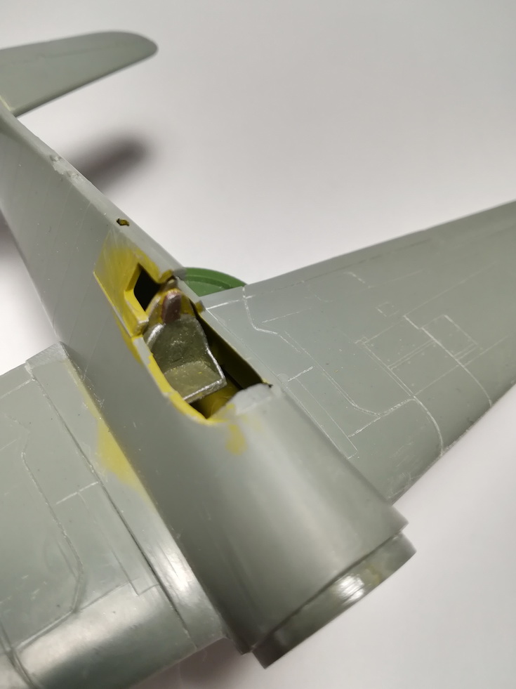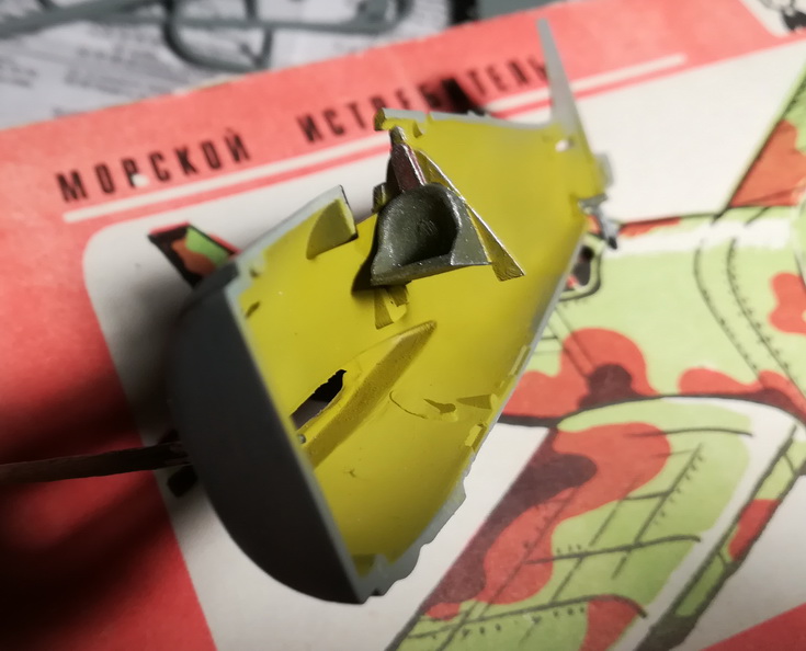 Ну и процесс, как говорится, пошел. Сегодня отделил половинки фюзеляжа, покрасил изнутри, приклеил заднюю стойку шасси.
