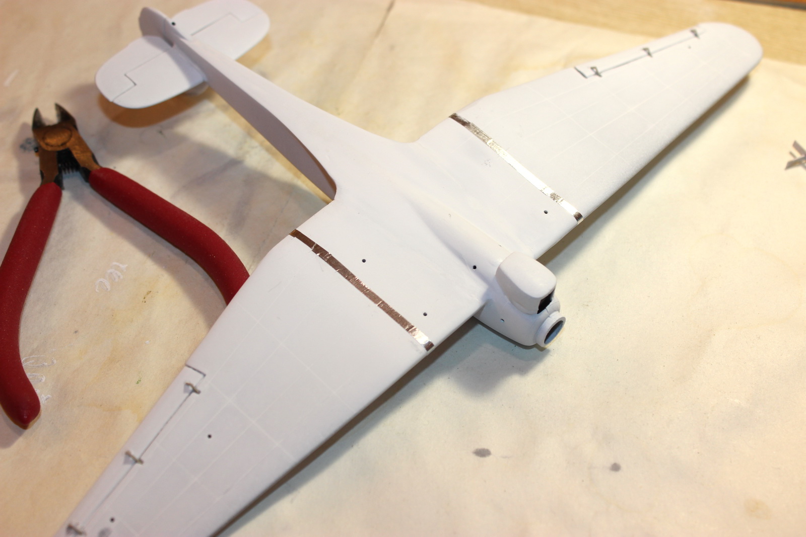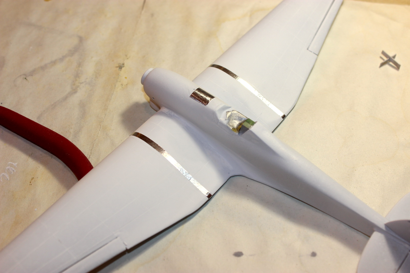 Фольгой самоклейкой изобразил ленты на плоскостях и лючок перед фонарем: