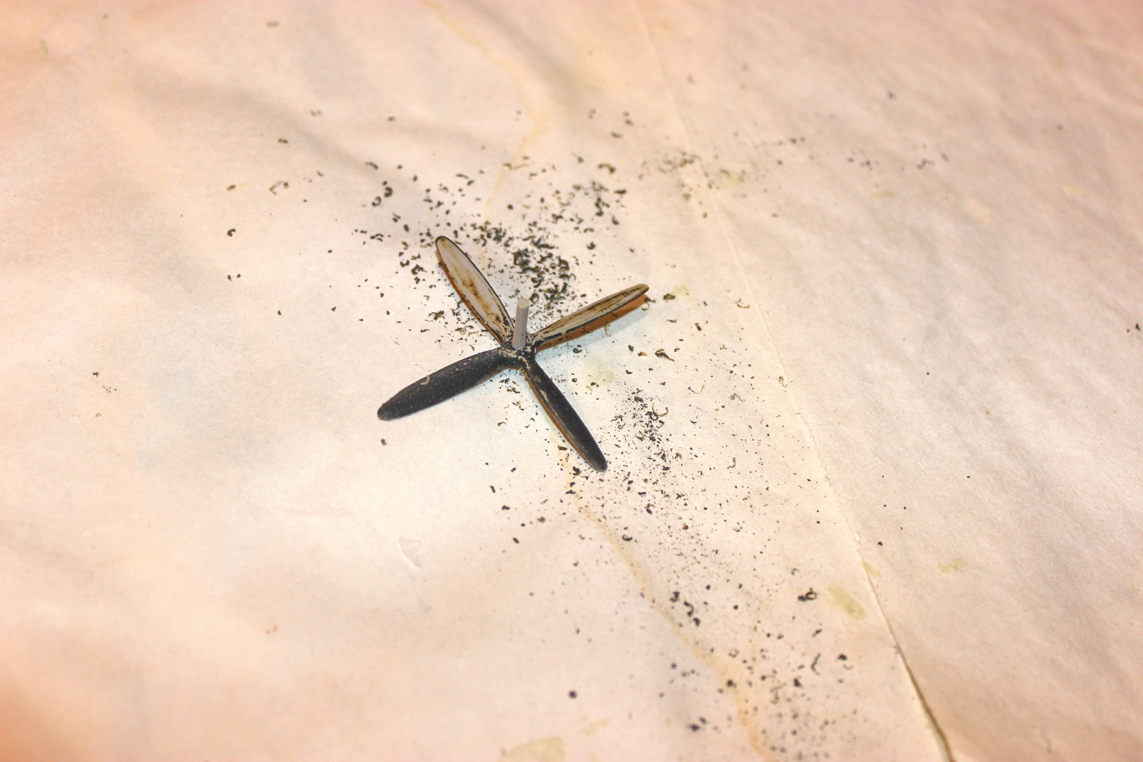 Винт был покрашен до меня. Не понятной, шершавой субстанцией. Ободрал, зачистил: