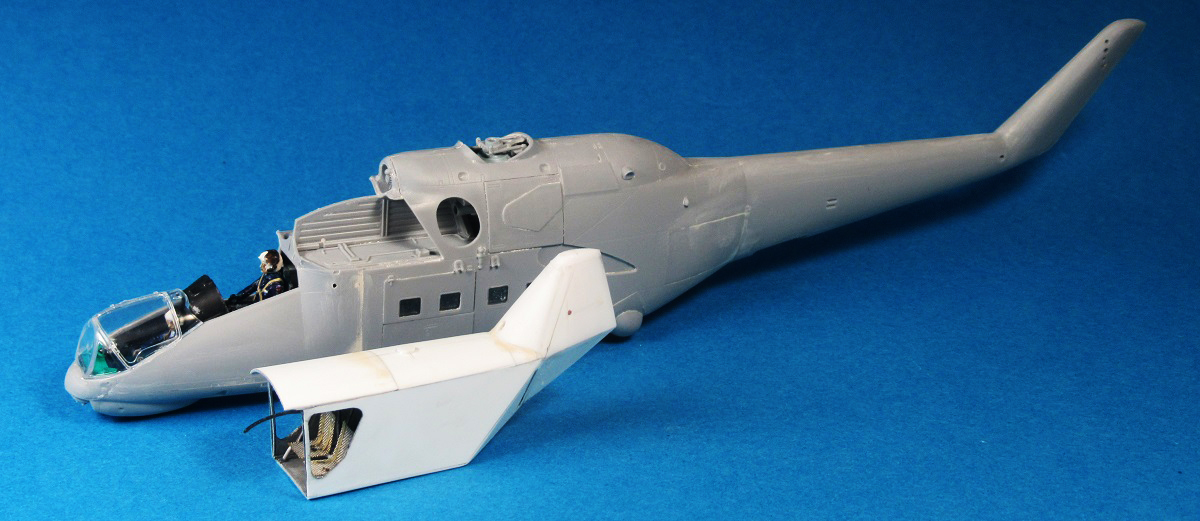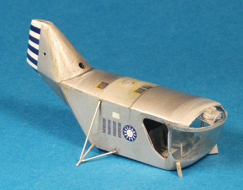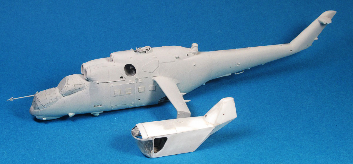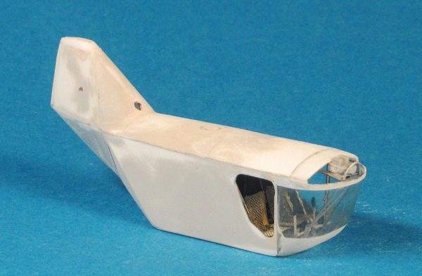 Обработал поверхности, из тянутого литника соорудил ферменную конструкцию с редуктором переднего НВ и органами управления полётом, доработал крышу модели.