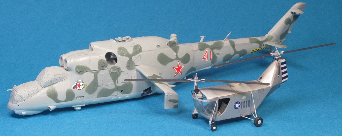 Ми-24РХР ждёт продолжения покрасочных работ, а его меньший тайваньский коллега только в ожидании момента встречи с аэрографом и свежей, ароматной нитрой.
