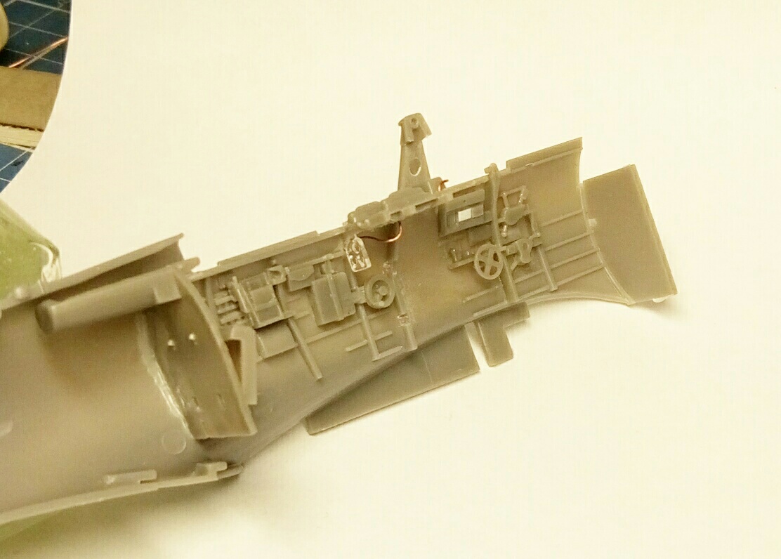 Небольшое продвижение, занимаюсь кокпитом. Сильно заморачиваться , смысла нет. По большему счету, все суслики . Кабина стрелка перекрывается турелью и радиостанции не видно. В самом ките убранство кабины дано впринципе все достойно, кроме толщины проводки. Решил обойтись минимумом..