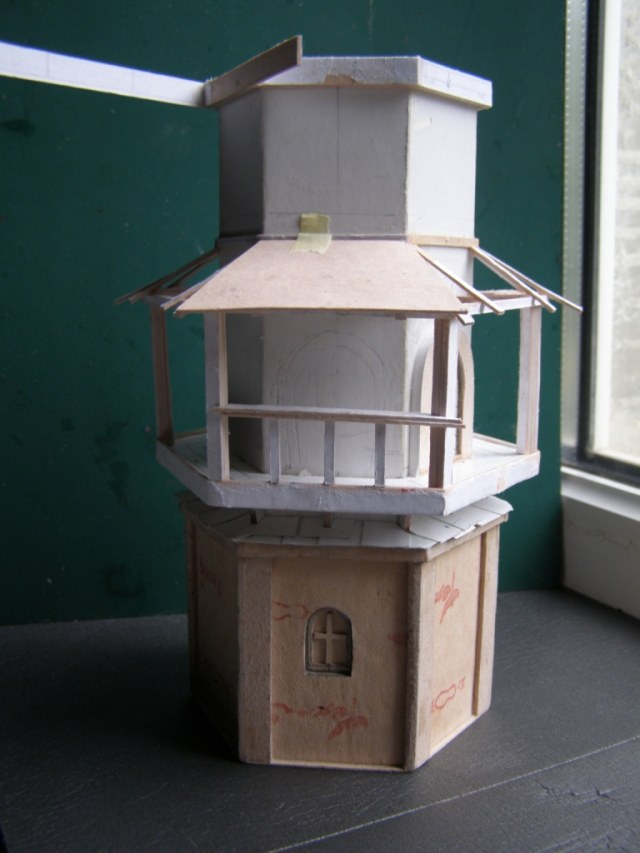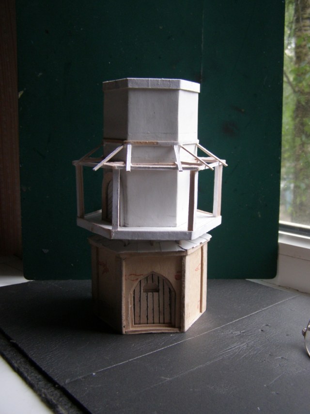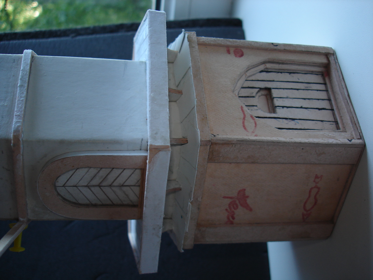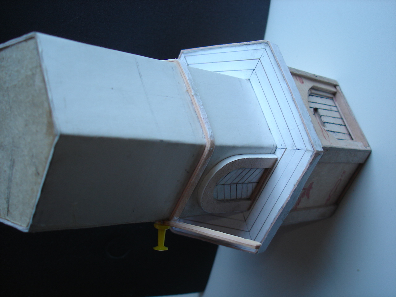 Затем обозначили упор верхней глухой части конструкции, тут применили медицинский шпатель из дерева. Благо этого добра там было - ешь НЕ ХОЧУ. Вклеили скажем так крышу и начали формировать еще одну конструкцию. пошли по другому. Просто сплошной заготовки не получалось.