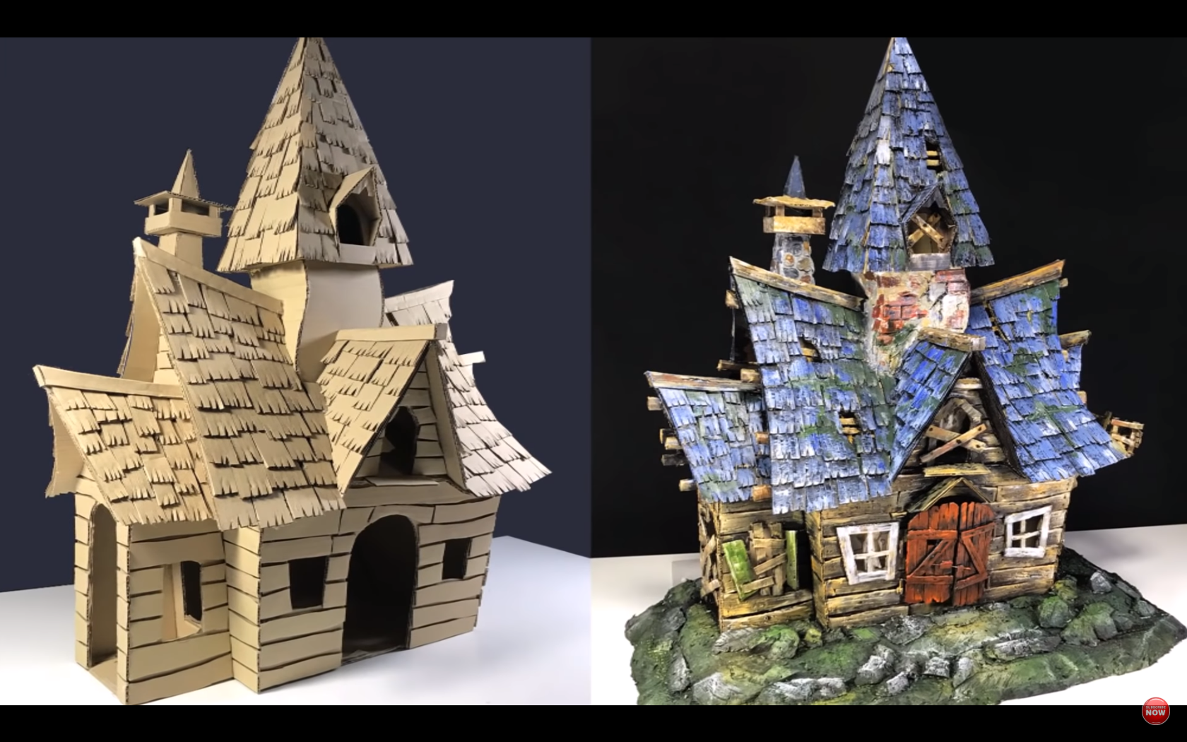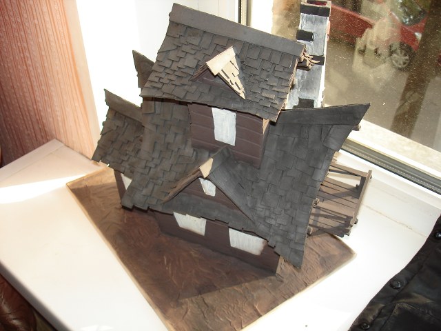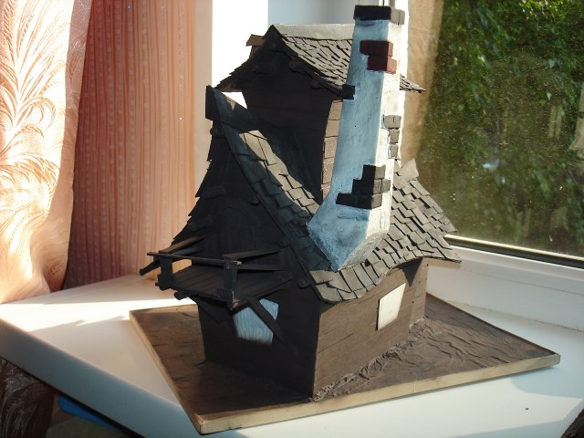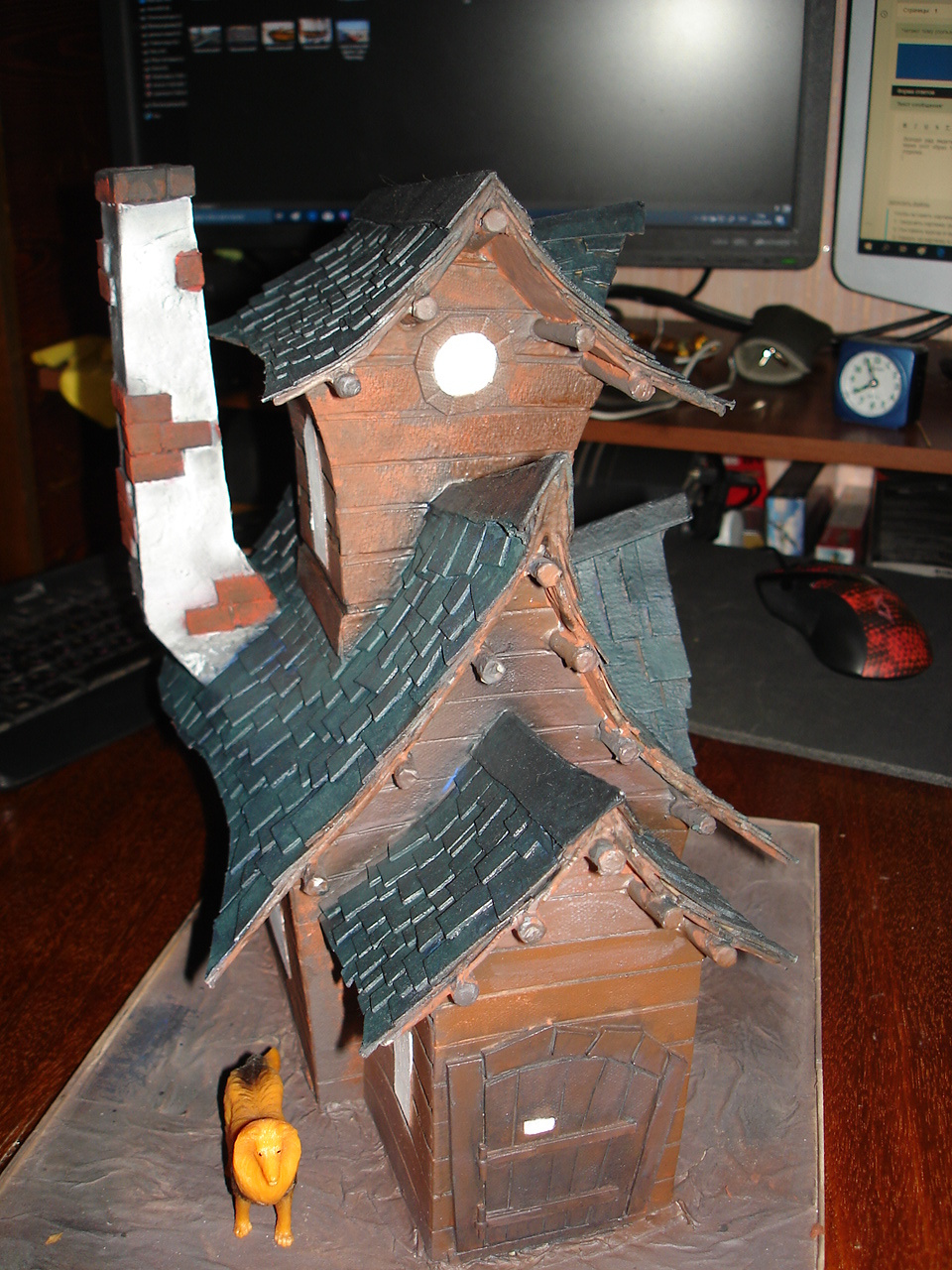 Василий,а домик классно получился,да со структурой картона немного вышла осечка,нужно было его немного грунтануть обычной строительной шпаклевкой,тонким слоем просто убрать структуру