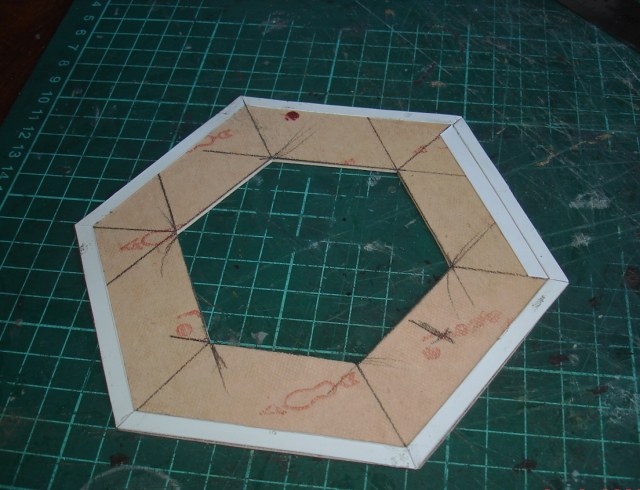 Плотный обувной картон толщина 1 мм. Основание будет шестигранное. Можно делать из панелей а можно просто сделать надрез на месте граней. минус только в том что сгибать надо от надреза и он будет на лицевой стороне.