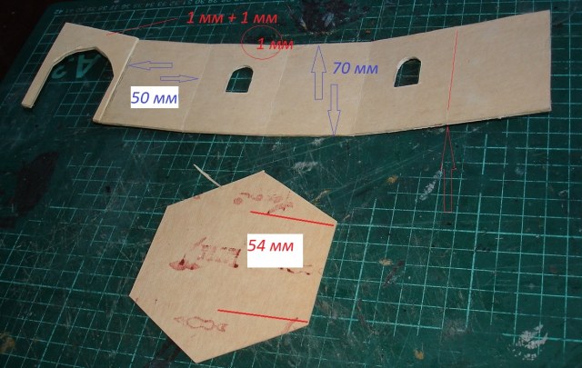 Грань шестигранника тут 40 мм, под части оснований вклеены упоры