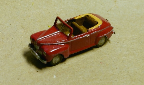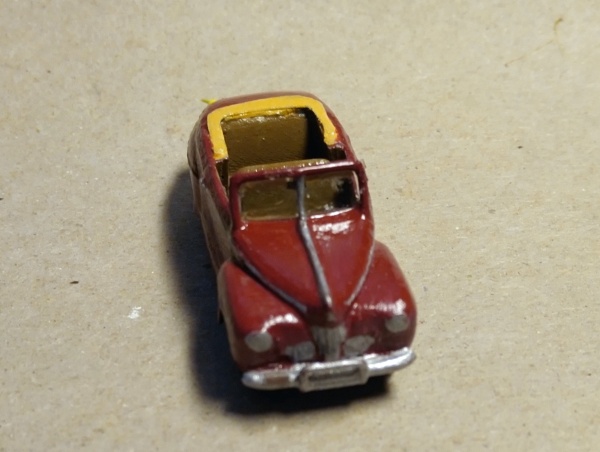 Машинка постепенно принимает форму. Сейчас сохнет футура, потом легкая смывка, пигменты, брызги от колес - все же пронеслись по не самым лучшим дорогам, в самый мокрый месяц года... Стекло как и на самолете - скотч на циакрине и клее для прозрачных деталей от Зипмакета, и со слоем футуры на липком слое. Из деталей добавил ручки дверей внутри и снаружи, подлокотники, солнечные щитки на стекло, и зеркало заднего вида. Плюс номера, красные на сером фоне = Гавайи 1941. Кузов останется глянцевым, интерьер покрою матом.