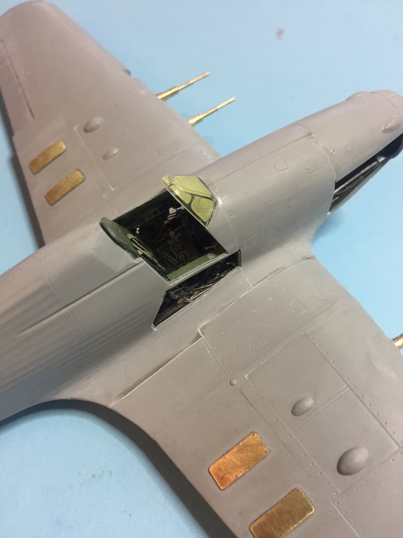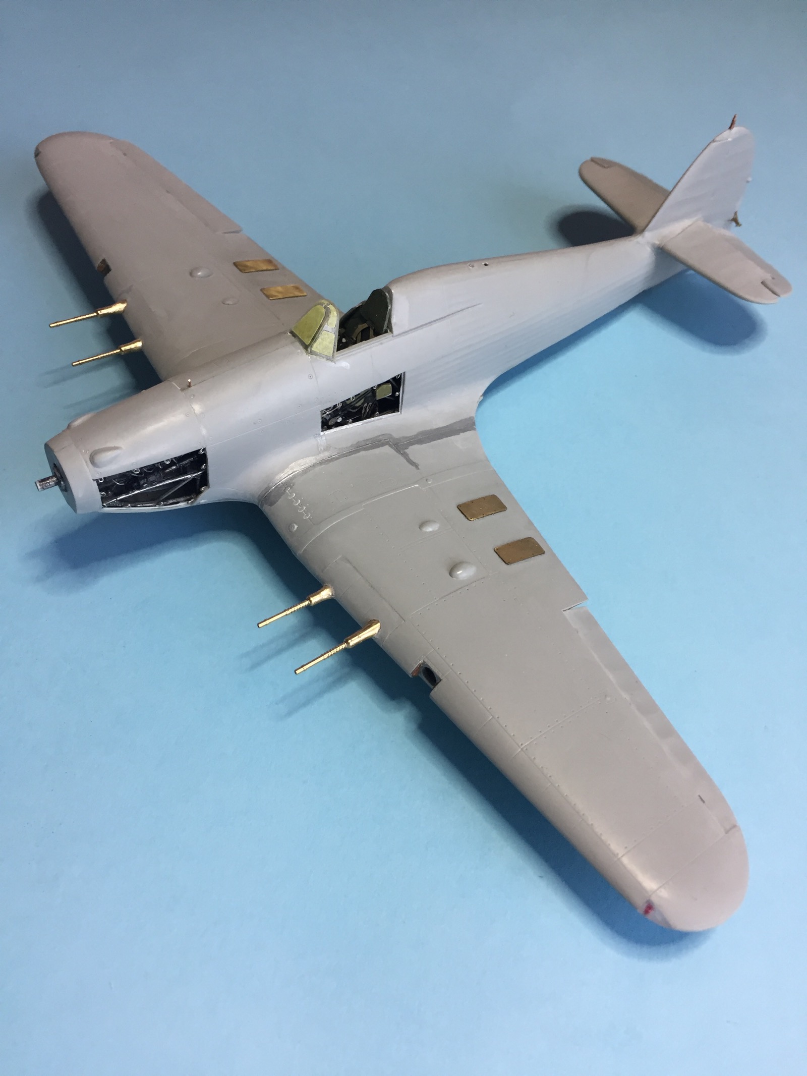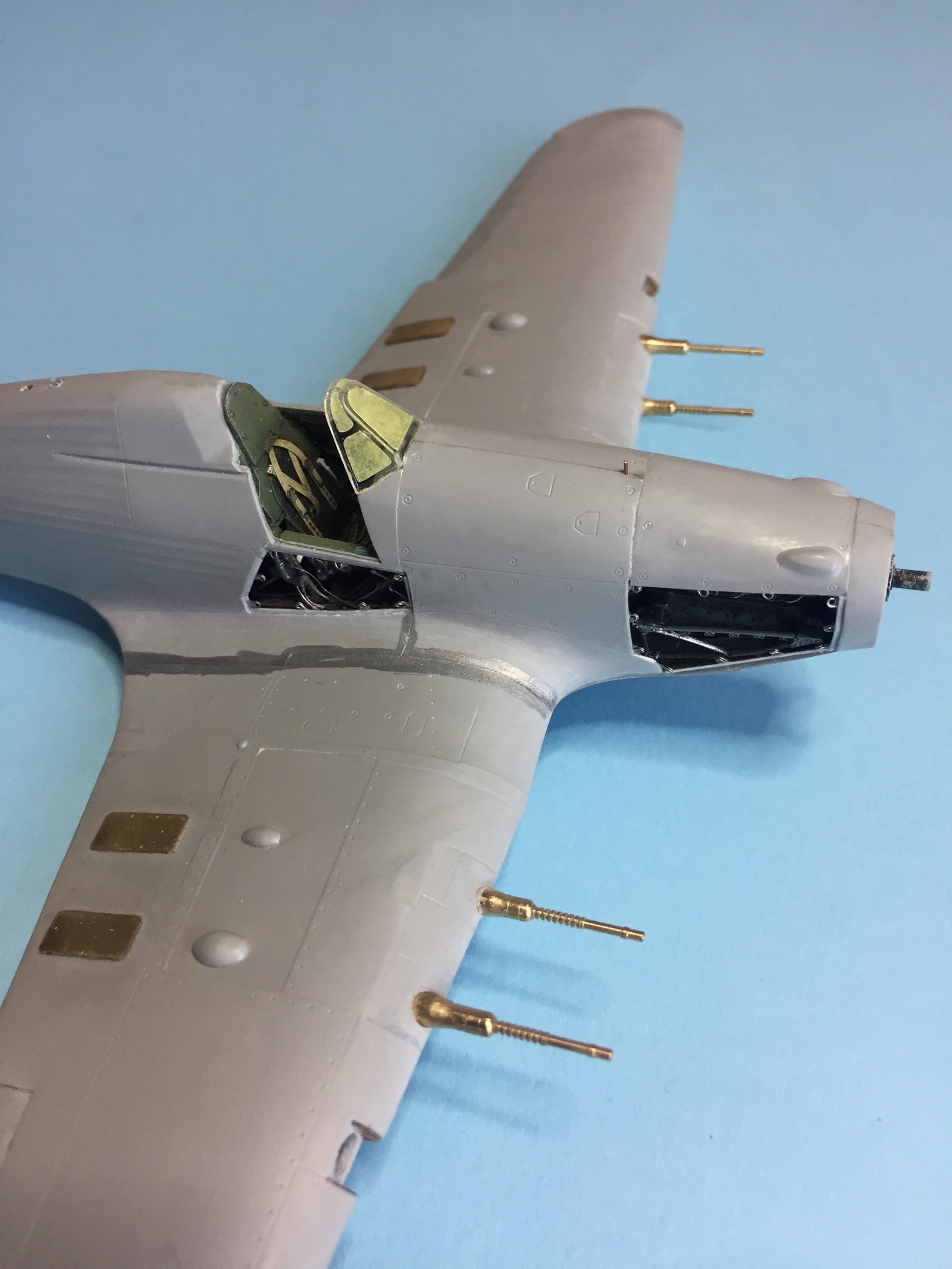Работу начал с кокпита и двигателя. Добавил всякой мелочевки и проводов.