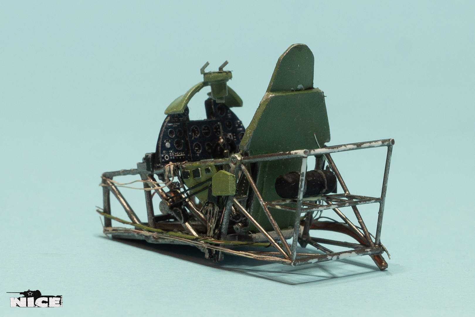 Решил усложнить себе задачу- сделал левую дверцу открытой. Пришлось дорабатывать каркас кокпита. заодно добавил баллон.