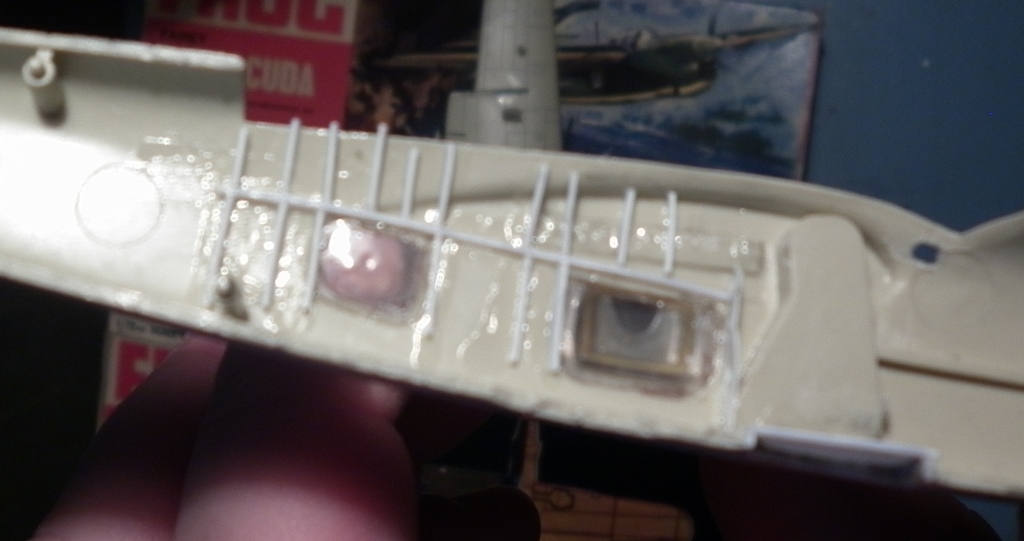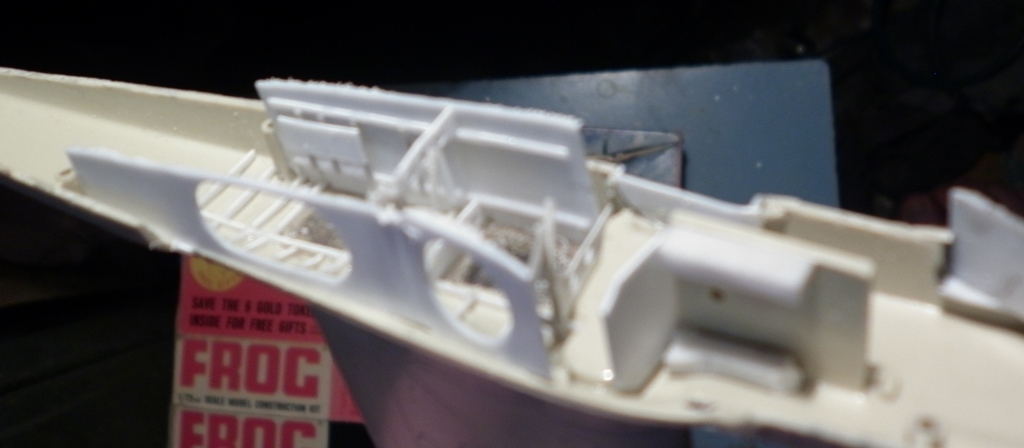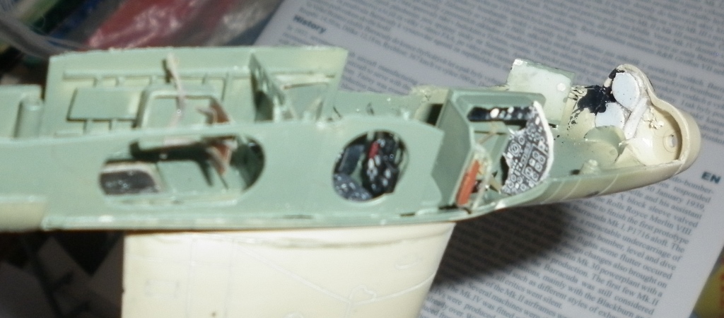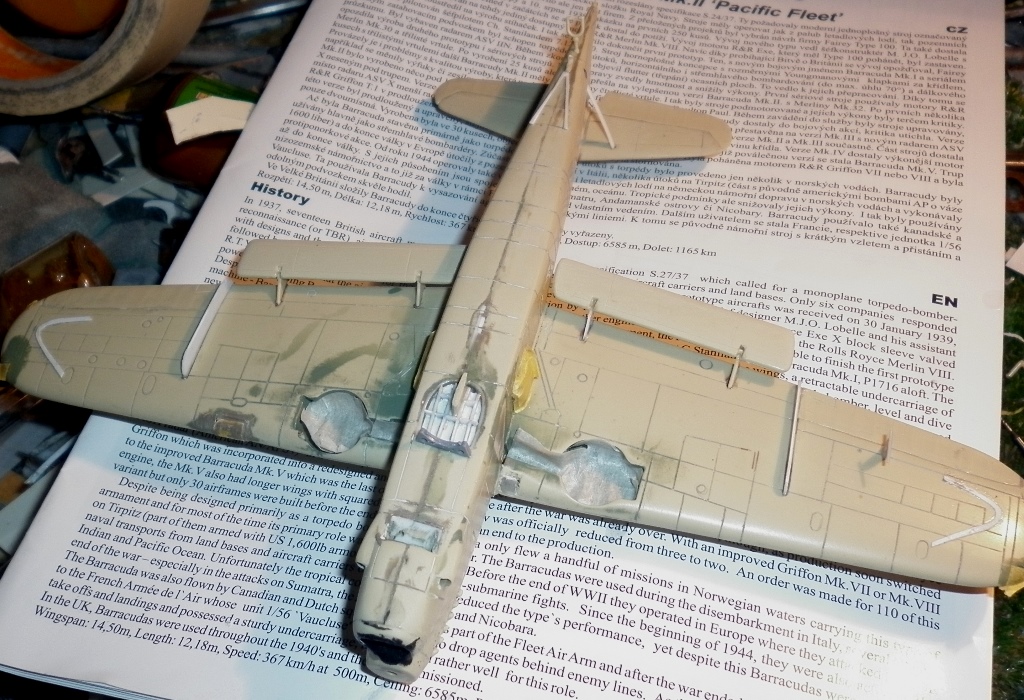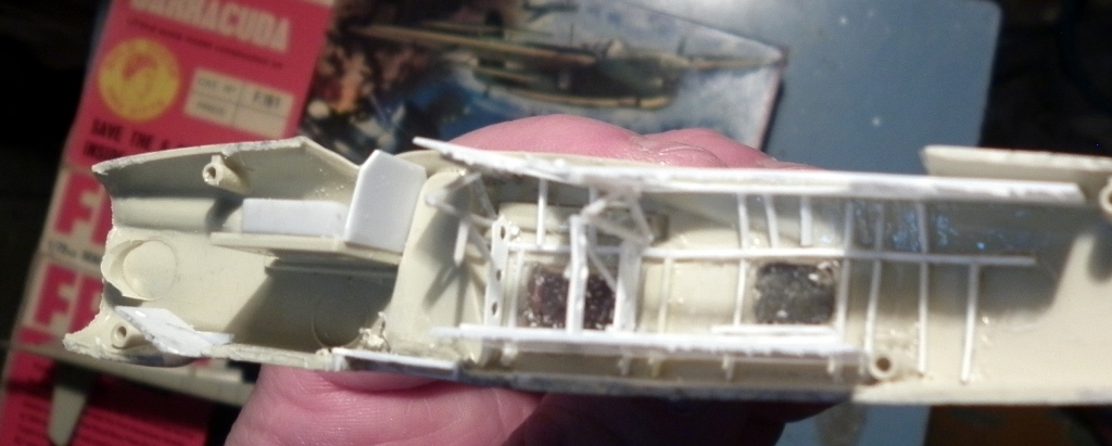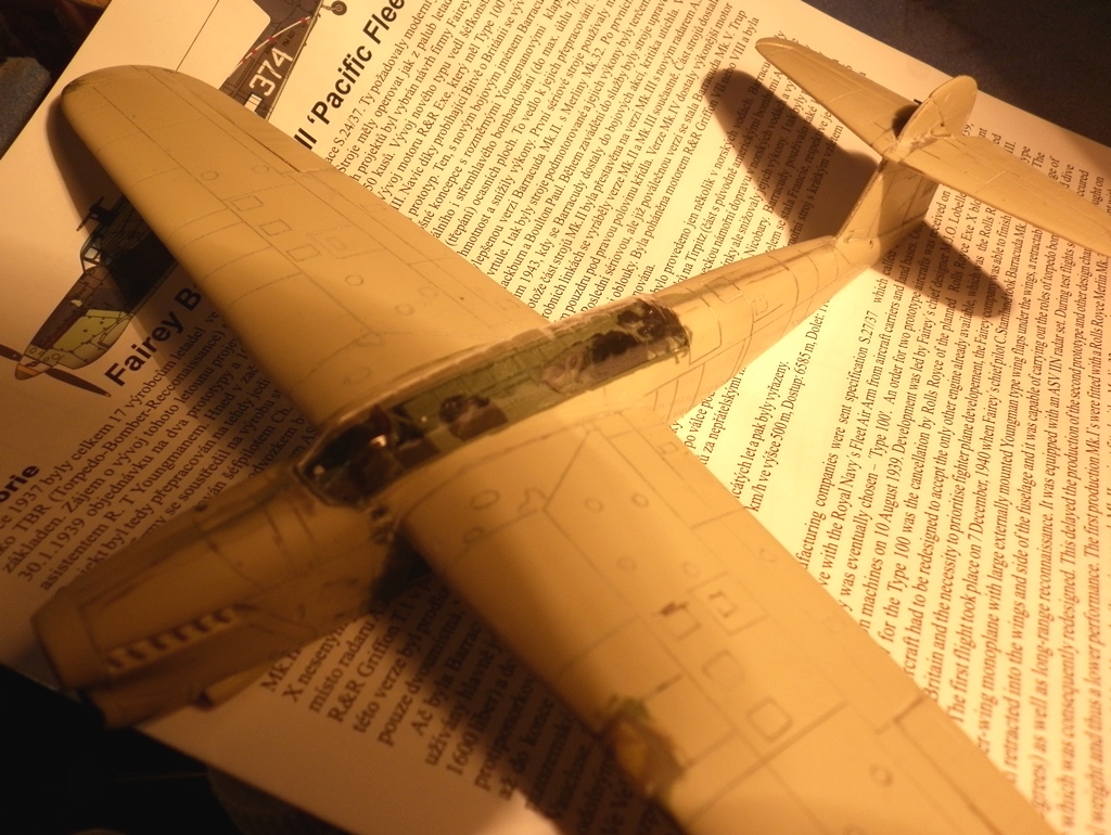 Трудностей со сборкой и нарезанием кроя не было. Пластик очень приятный в работе. Сохранность идеальная. Даже декаль не сильно пожелтела. Планирую ее покрыть лаком и использовать (декали больше 50 лет!). Приборная доска - уменьшенная ксерокопия с иконки продаваемой на Е-бее декали. Интерьер- сыростирол. Цвета - рекомендованные чехами. Будет использована торпеда из чешского набора - в том варианте окраски используются только бомбы. Радиаторы - сеточка от маслофильтра. БАНО- из прозрачного литника. Фонарь давленый, самодельный. Планирую открыть.