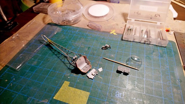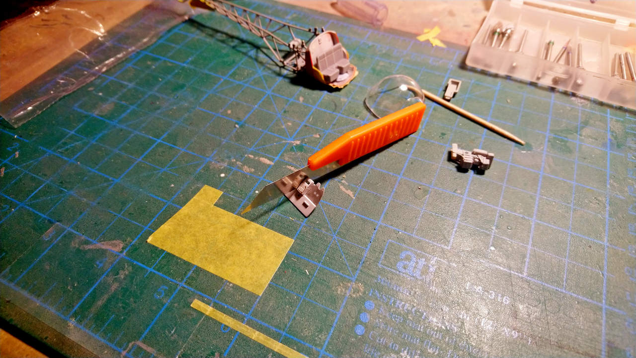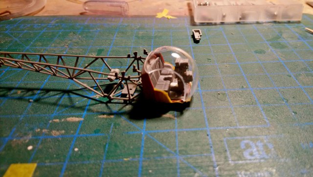 Начал маски лепить и решил на всякий случай примерять фонарь. С ужасом обнаружил что он не встаёт на своё место - я каким-то образом умудрился неправильно собрать кабину, ну и спасибо инструкции. Пришлось всё разобрать и переделывать.