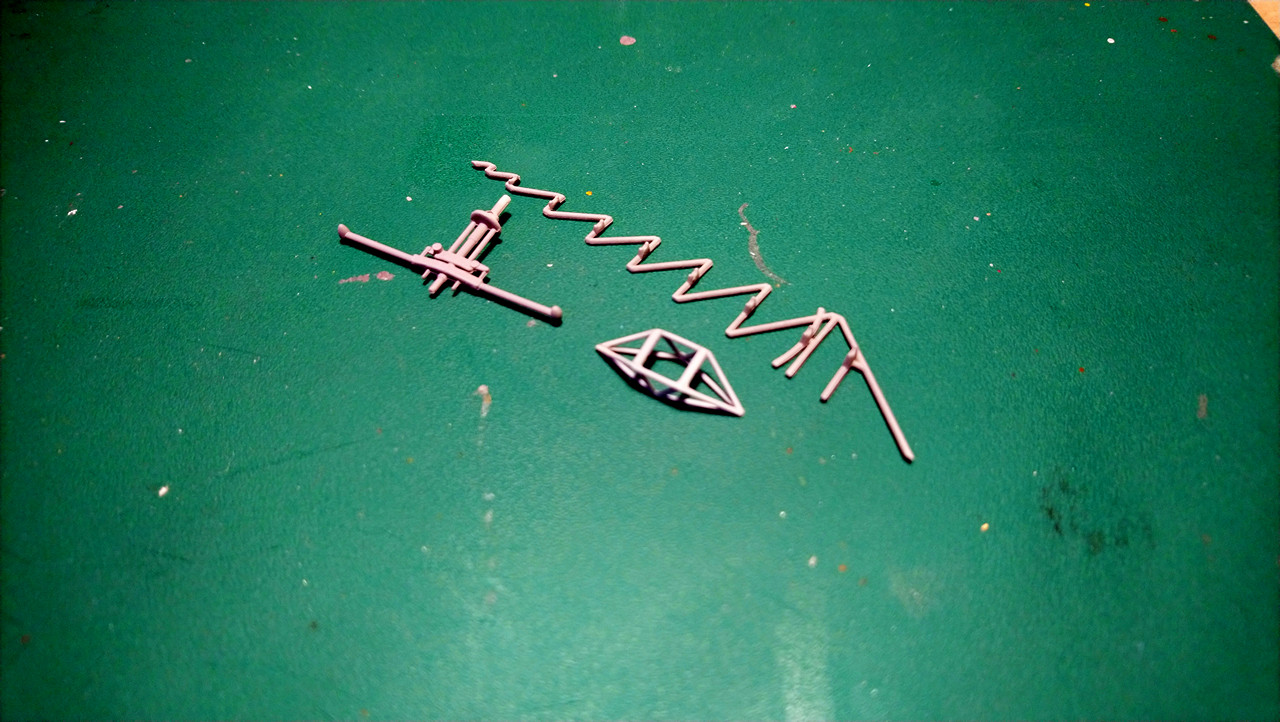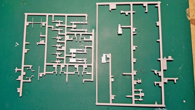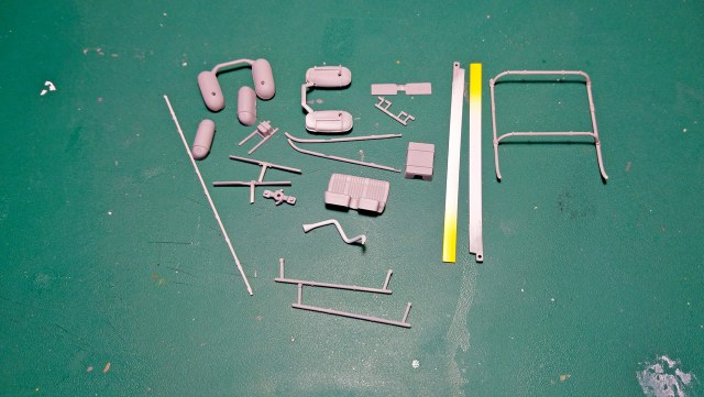 Кучка подсобранных и загрунтованных частично окрашенных деталей