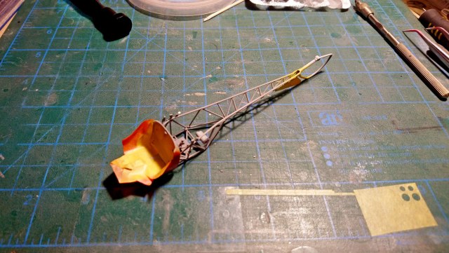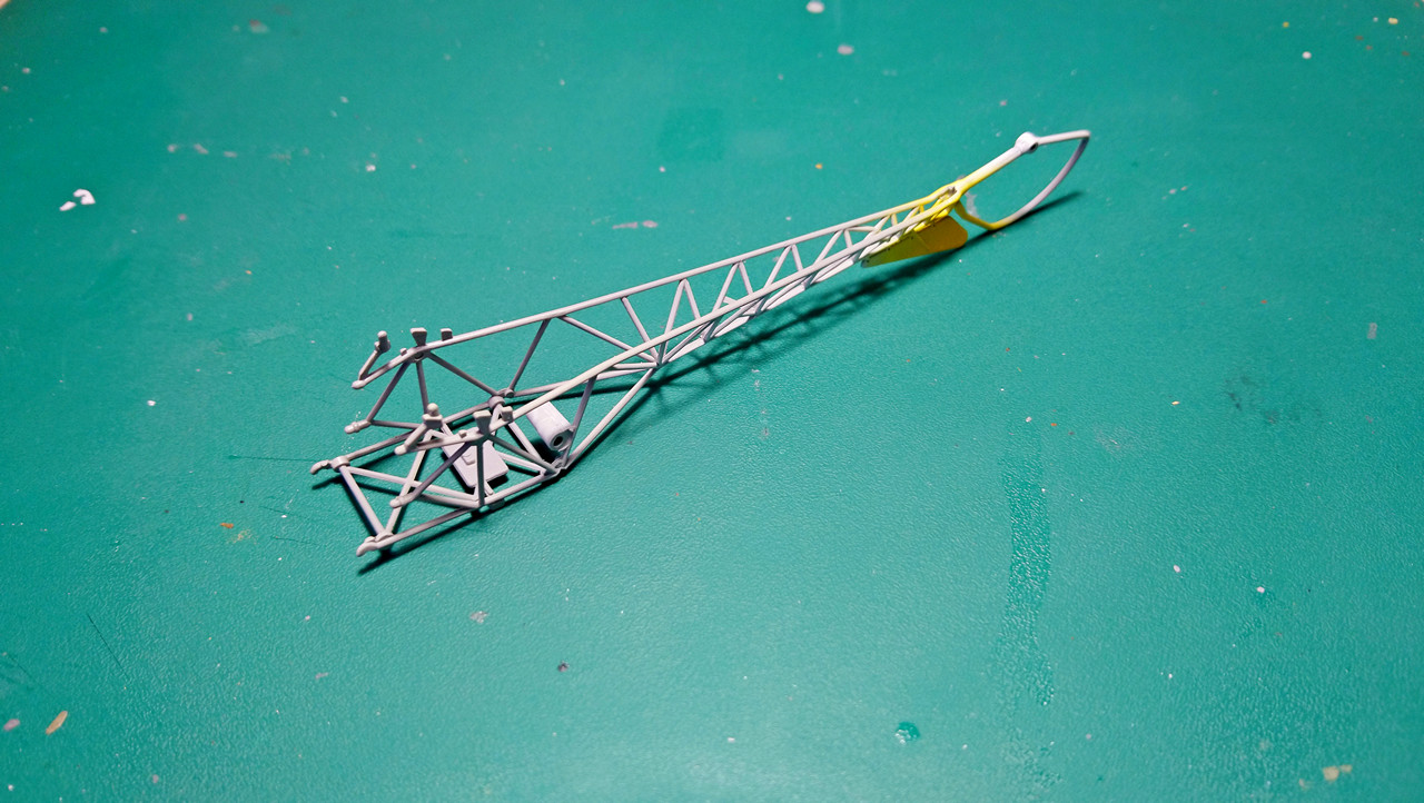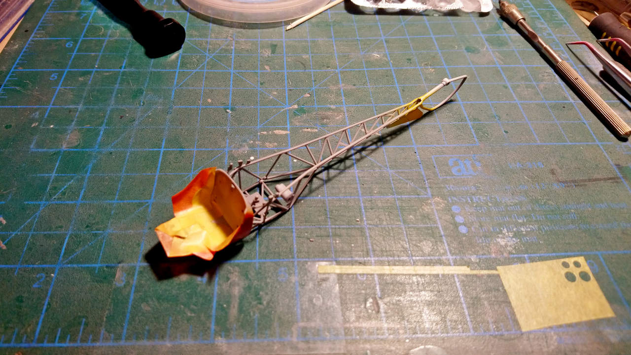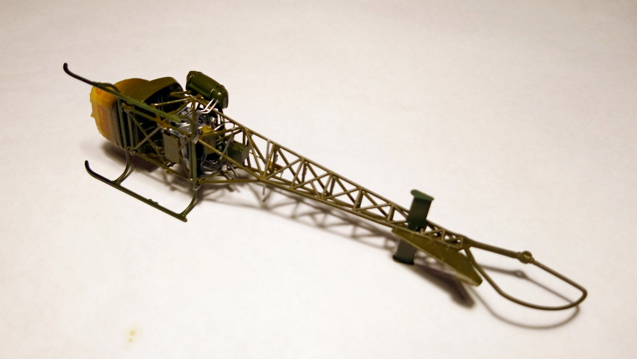 Собрал каркас хвостовой балки с моторамой, загрунтовал, подкрасил в жёлтый законцовку стабилизатора