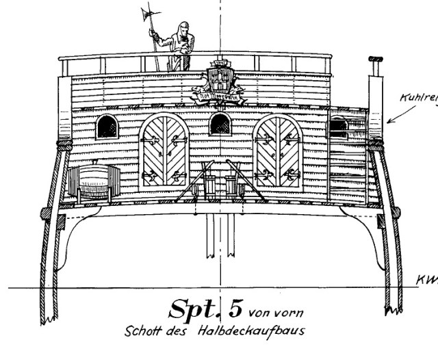 Кстати, вот по Винтеру - в итальянском проекте реконструкции (1892 г.) практически вплотную к месту расположения переборки находится грот-мачта, что исключает не только наличия в этом месте двери, но и саму переборку, ибо она будет мешать обтяжке такелажа...