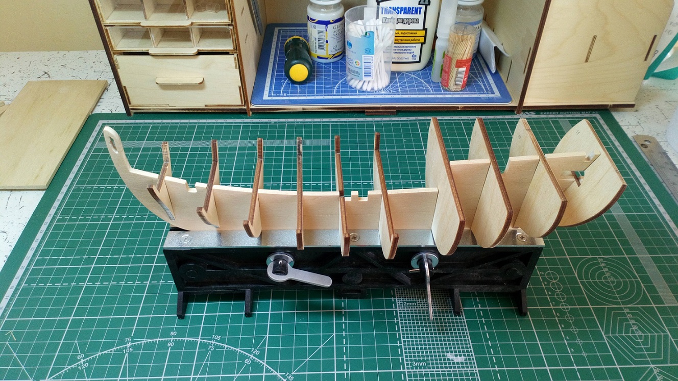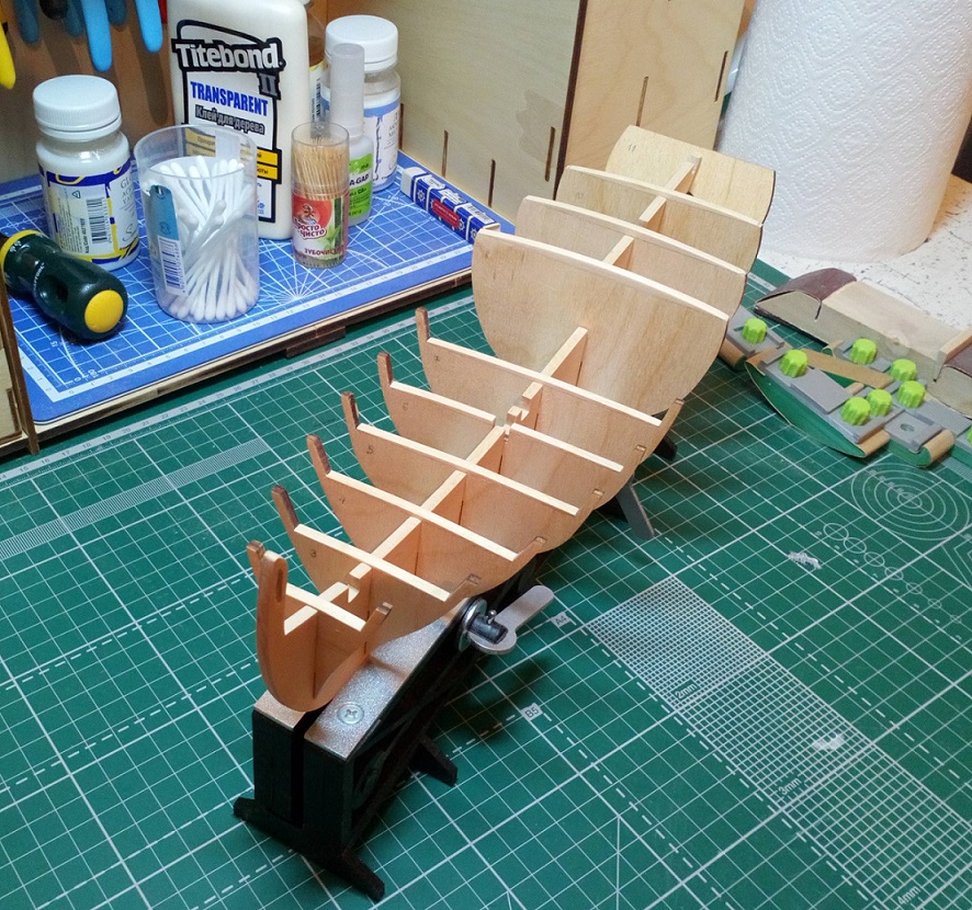 Изучение набора от Amati показало одну грустную вещь (возможно не последнюю) килевая рамка из фанеры пошла винтом.