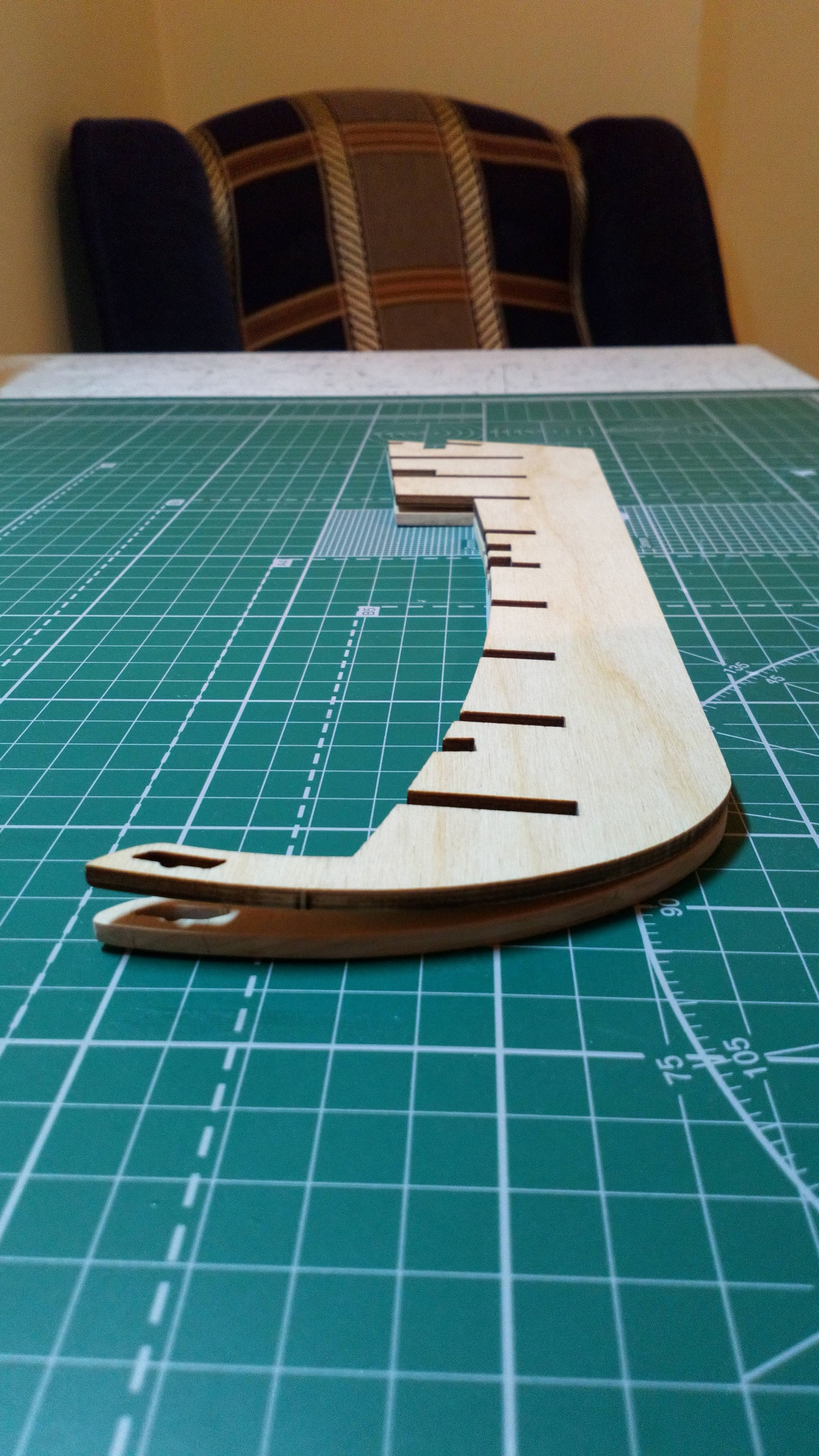 Изучил разные варианты борьбы с этой напастью, и в итоге, остановился на кардинальном - выпилить новую килевую рамку из припасенной липовой ламели 4 мм толщины. Вот, что у меня получилось: