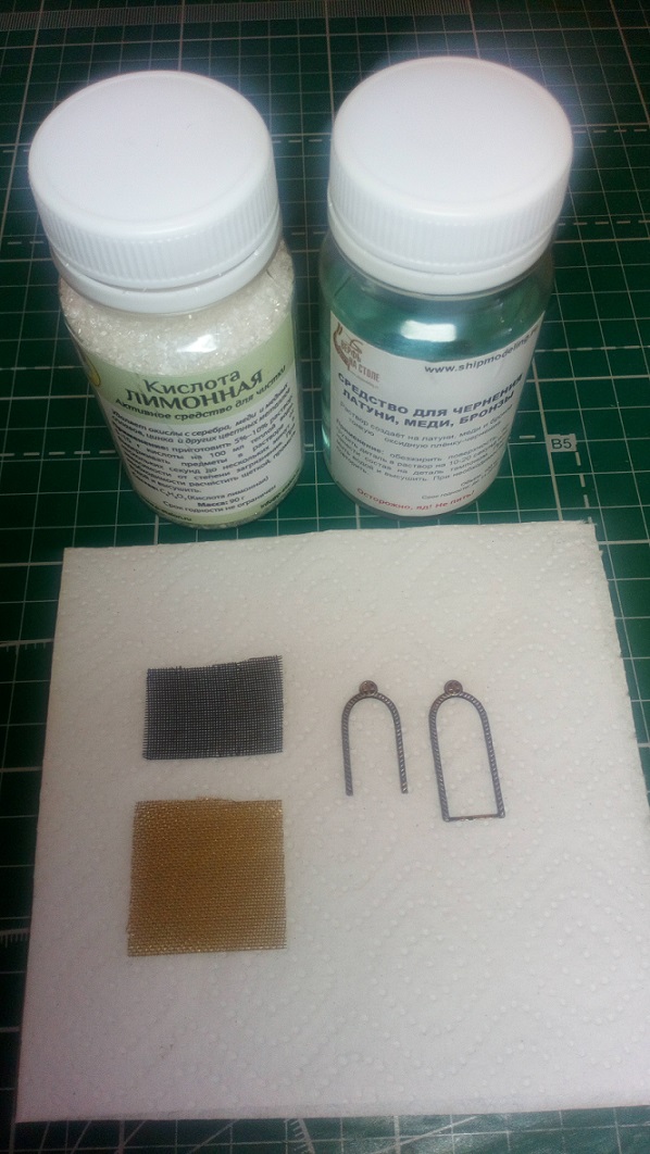 Удалось зачернить сеточку в оконный проем (предварительно опалил на свечке) и металлические наличники на окошко и дверь (осторожно! боятся огня).