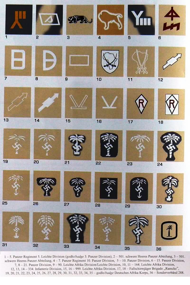 @Слесарь Железнюк написал:Ну вот тактические эмблемы немецких дивизий Арфиканского Корпуса. Подходит по очертаниям континента только 164th leichte Afrika Division, но на эмблеме перекрещенные сабли, а не свастика.