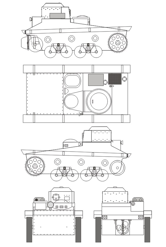 Очень мало информации по этому танку, но в принципе, двух фоток было достаточно, чтобы сделать проекции этой модели и понять внешние особенности конструкции, единственное не увидел как выглядит выхлопная труба, поэтому планирую сделать выхлоп как у плавающего танка Т-33.