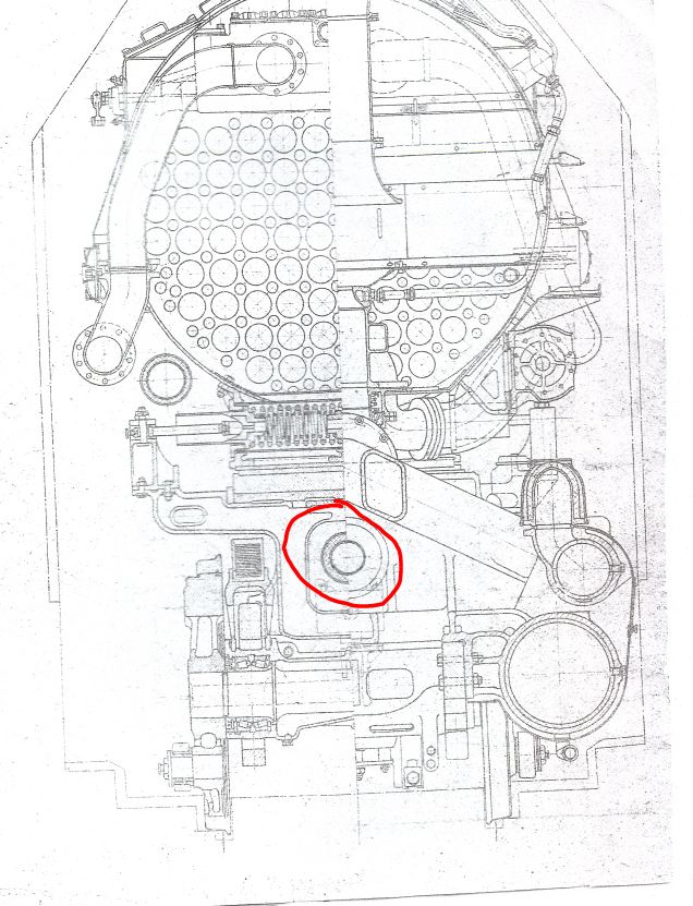 Судя по чертежам между паровыми машинами должен проходить паропровод на цилиндры высокого давления(на виде сбоку пунктирная линия), и из тройника расходиться на левый правый цилиндр ВД. Т.е. где стоит "знак вопроса", должна быть пустота и паропровод.