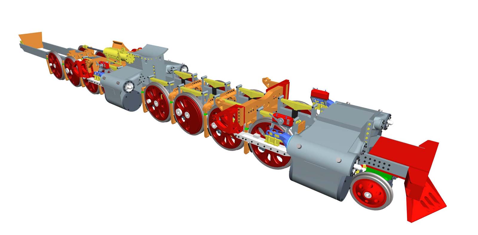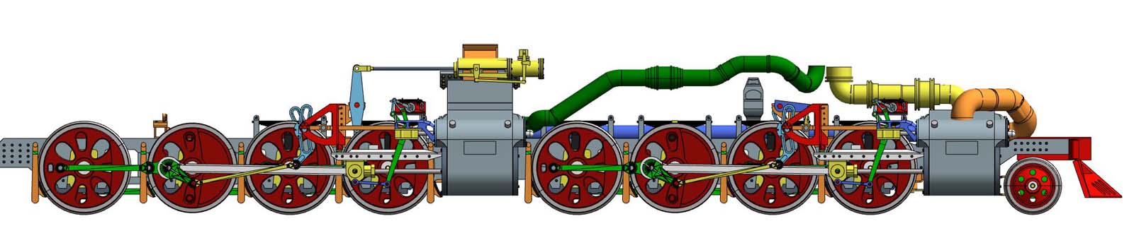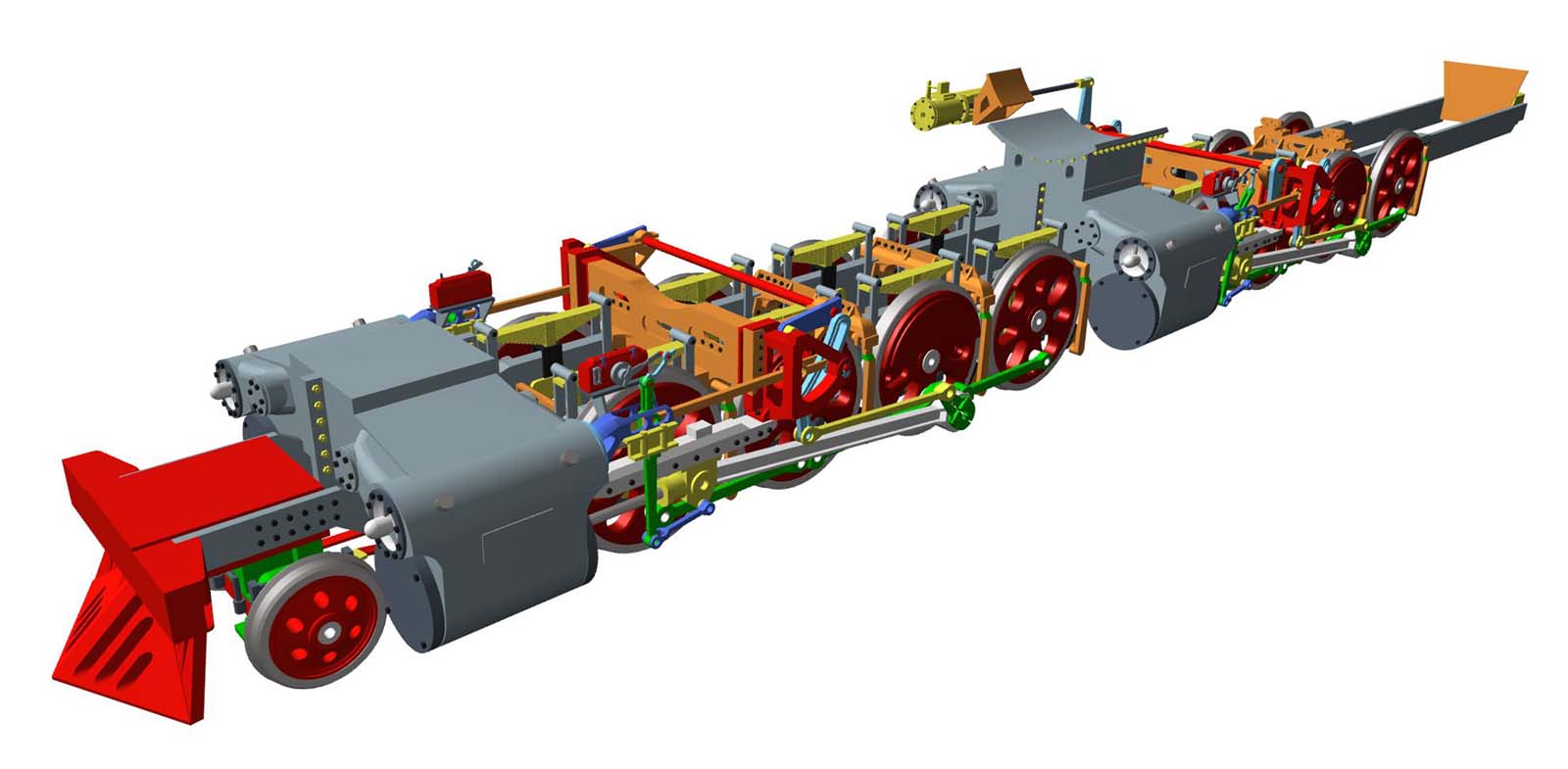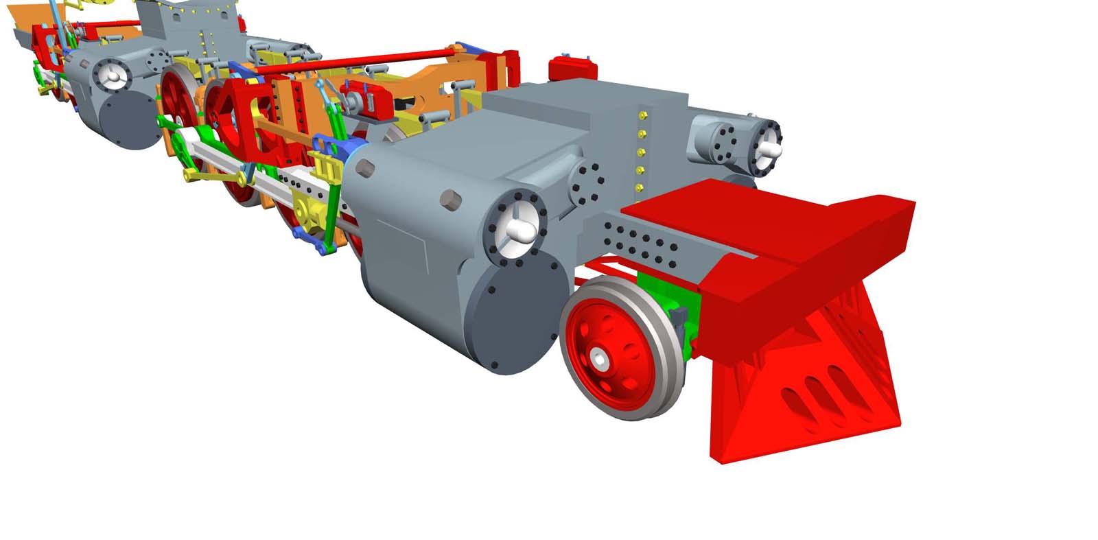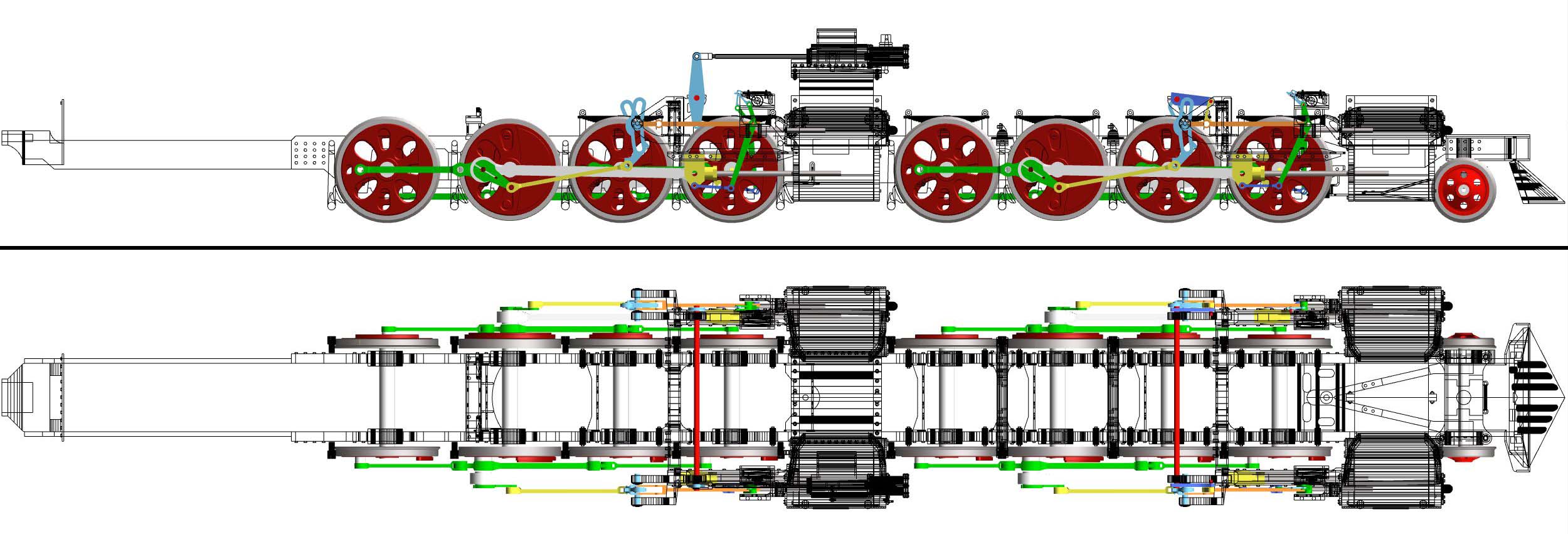 Обратил внимание, что у вас на раме паровоза в районе второй паровой машины не видно механизма соединения рам. У паровоза две рамы, а у Вас вроде как-бы одна. Будете делать механизм поворота?