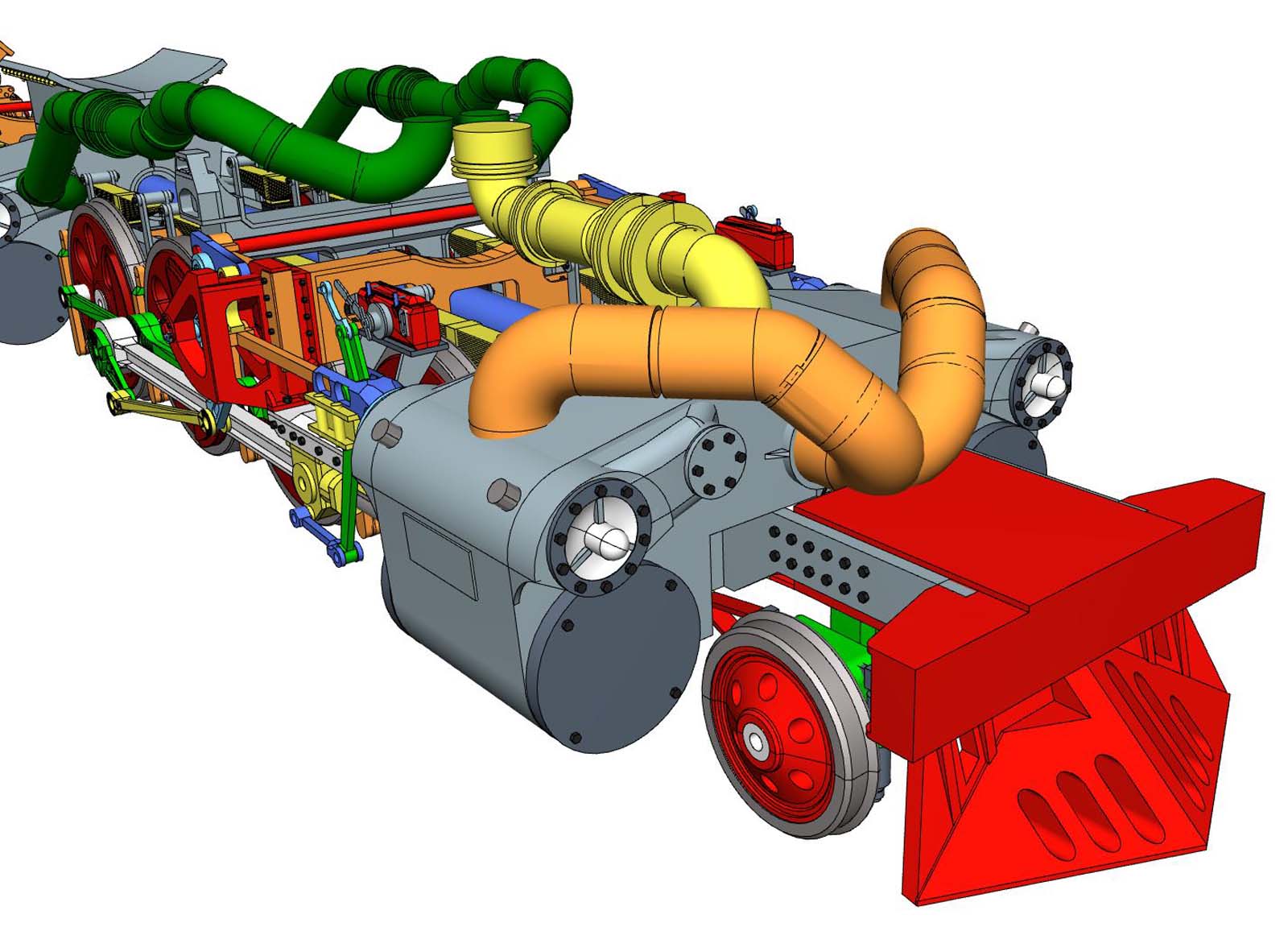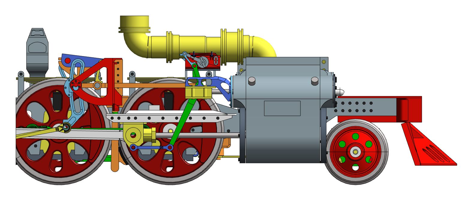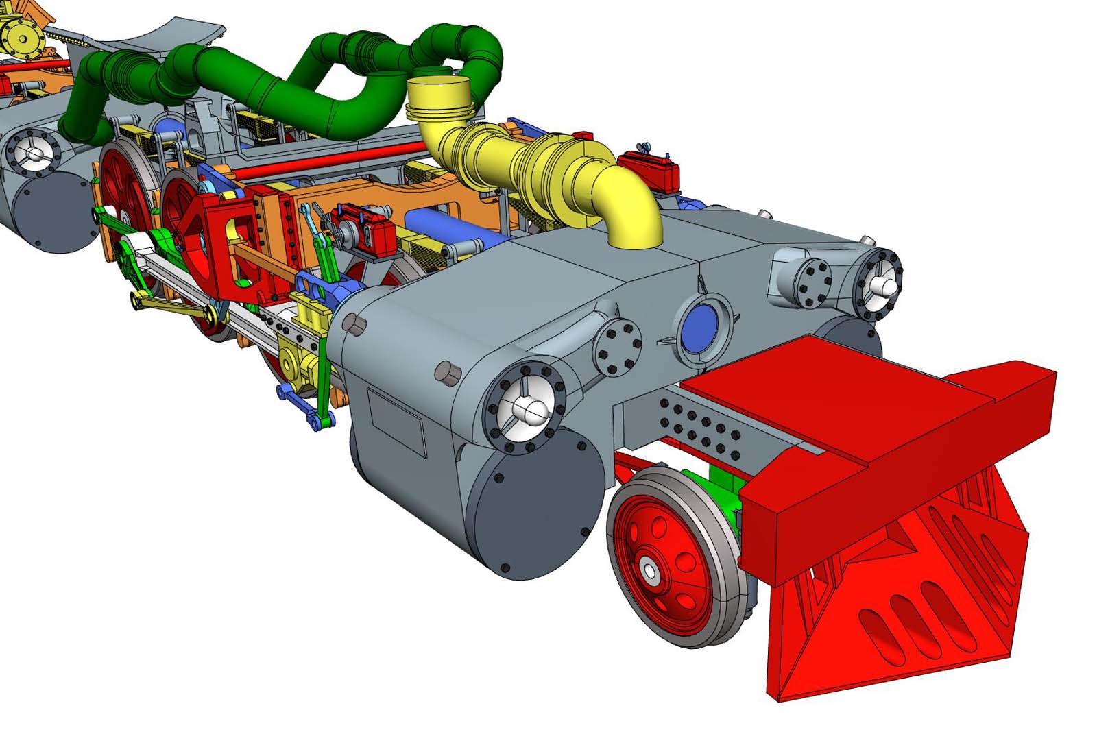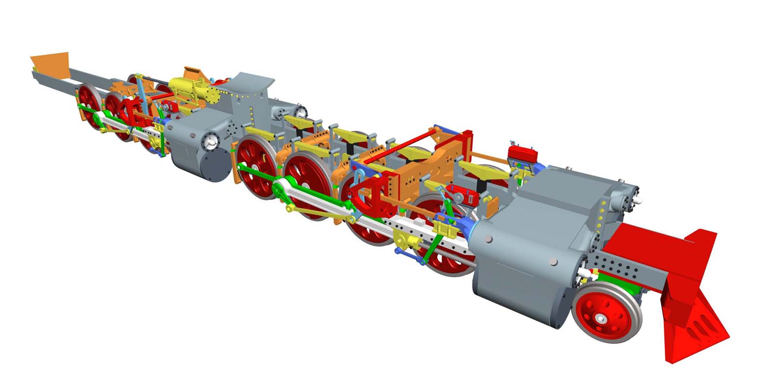 Обратил внимание, что у вас на раме паровоза в районе второй паровой машины не видно механизма соединения рам. У паровоза две рамы, а у Вас вроде как-бы одна. Будете делать механизм поворота?