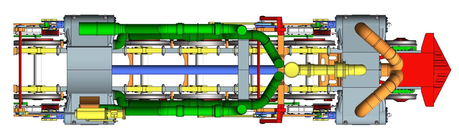 Отработавщий пар с каждого цилиндра должен уходить по двум трубам.. В начале и в конце цилиндра. Если я не забыл как работает паровая машина двойного расширения. Соответственно в коллектор отработанного пара (желтый у Вас) должны входить четыре прямоугольнве трубы.