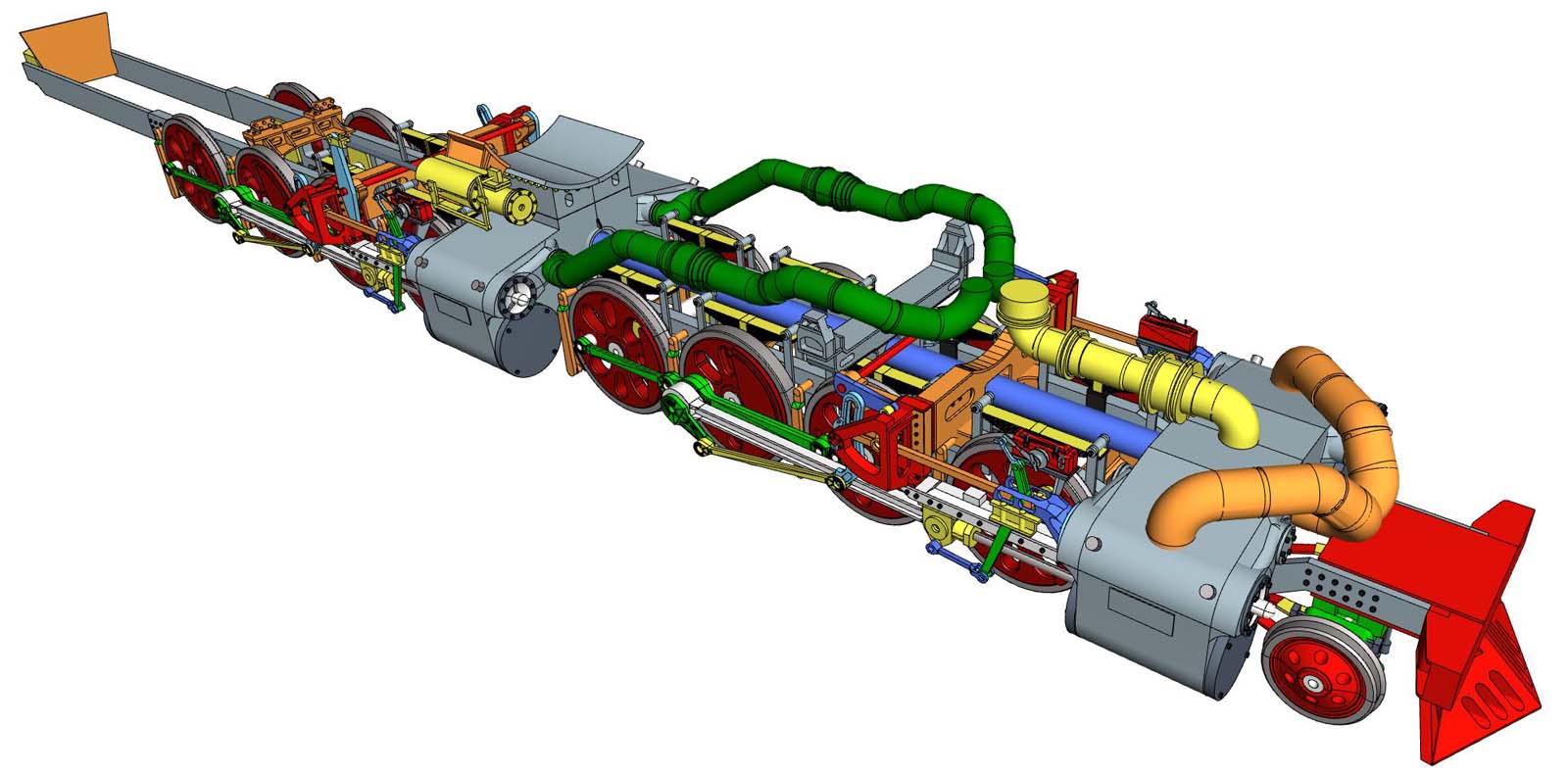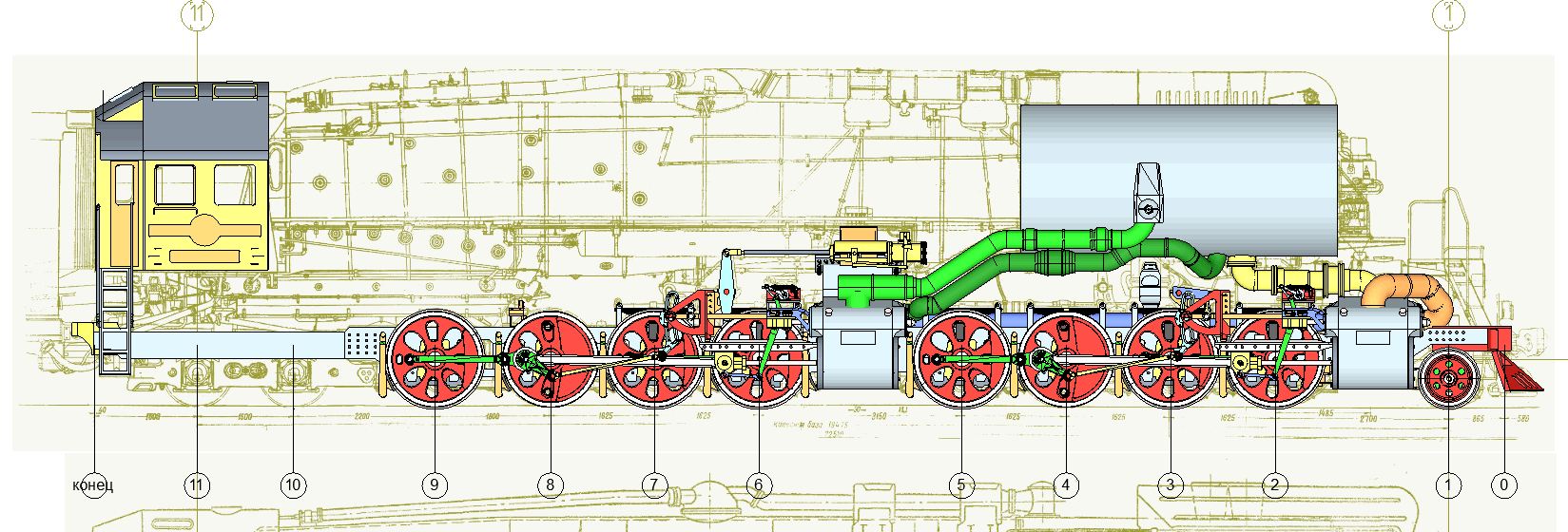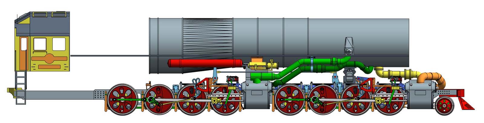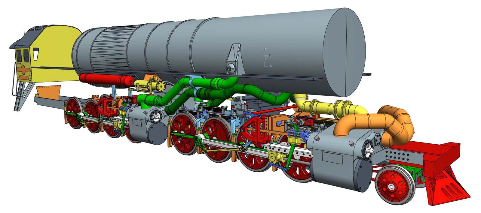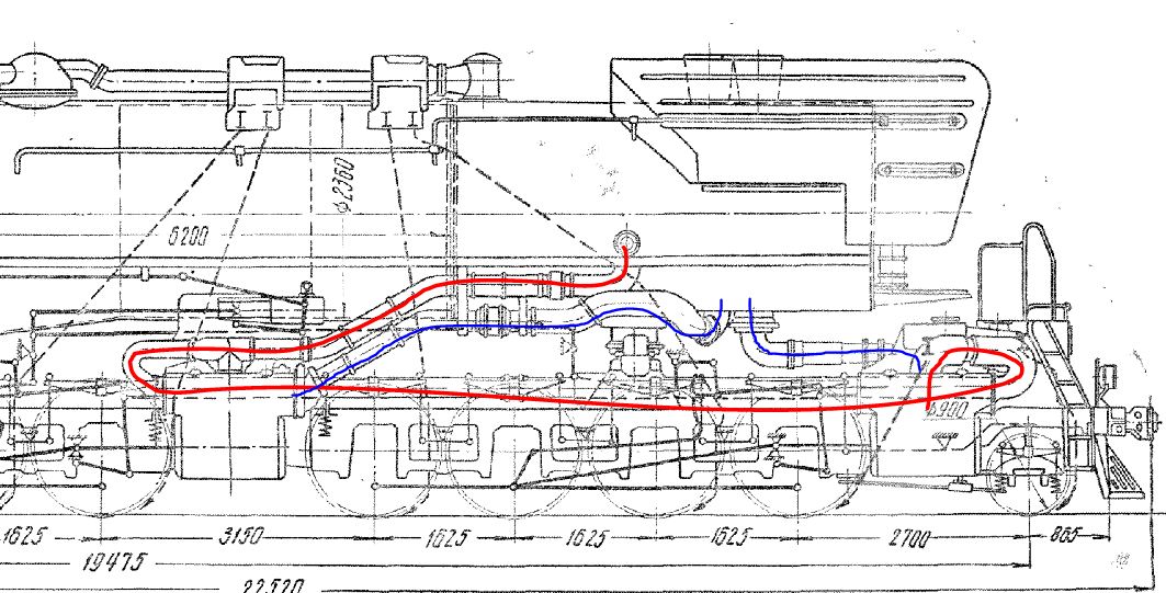 на схеме я видел паропровод, но пока его не рисовал. По ходу дела откорректирую. Судя по чертежу Биг боя паропровод от передних цилиндров вполне похож на правду