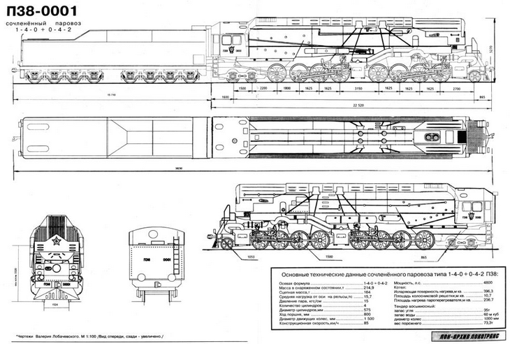Громадный сочленённый паровоз с осевой нагрузкой 20 тонн, самый крупный и тяжёлый паровоз в истории отечественных железных дорог (если считать с тендером). Всего с 1954 года было выпущено четыре образца, но появились они уже слишком поздно. В феврале 1956 года на ХХ съезде Коммунистической партии Советского Союза было принято решение о прекращении дальнейшего строительства паровозов и широком внедрении тепловозов и электровозов. В связи с этим все испытания паровозов были прекращены, а в 1959 году все 4 паровоза П38 были переданы предприятиям Белгородского Совнархоза, где их использовали в качестве котельных. До настоящего времени ничего не сохранилось.