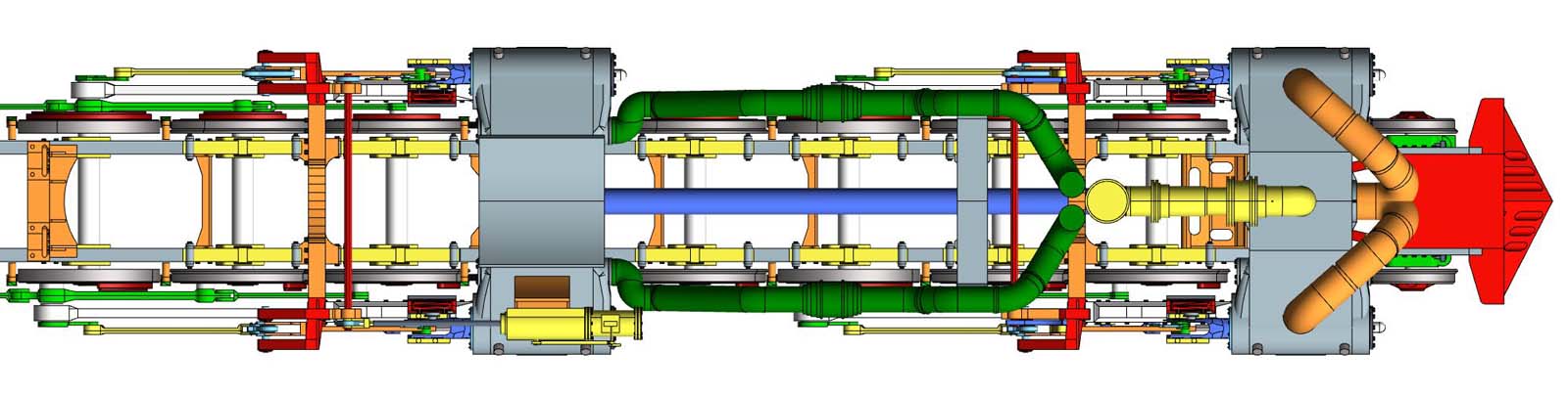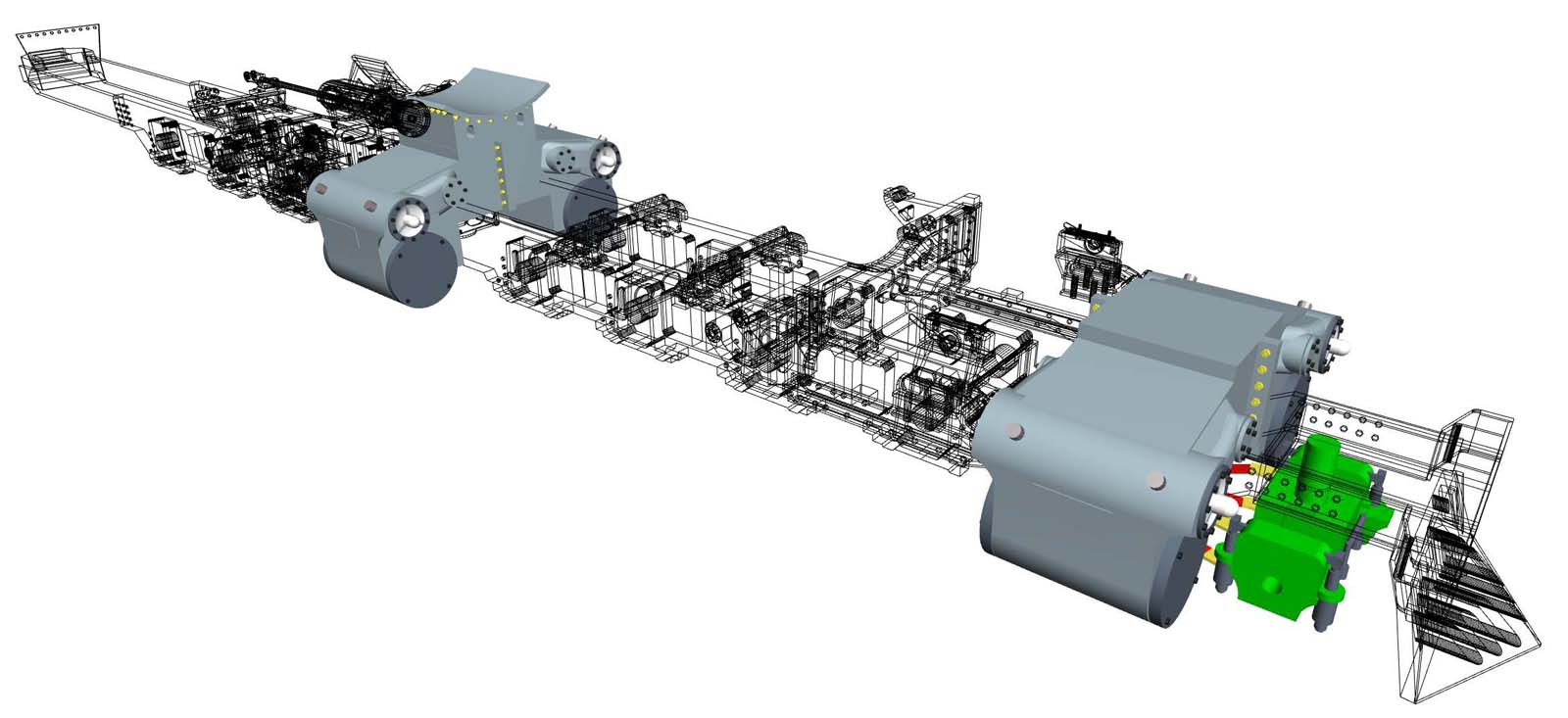 Через всю раму от второй паровой машины (по ходу) к первой паровой машине идет паропровод. Соотведственно он проходит через всю поперечную раму.