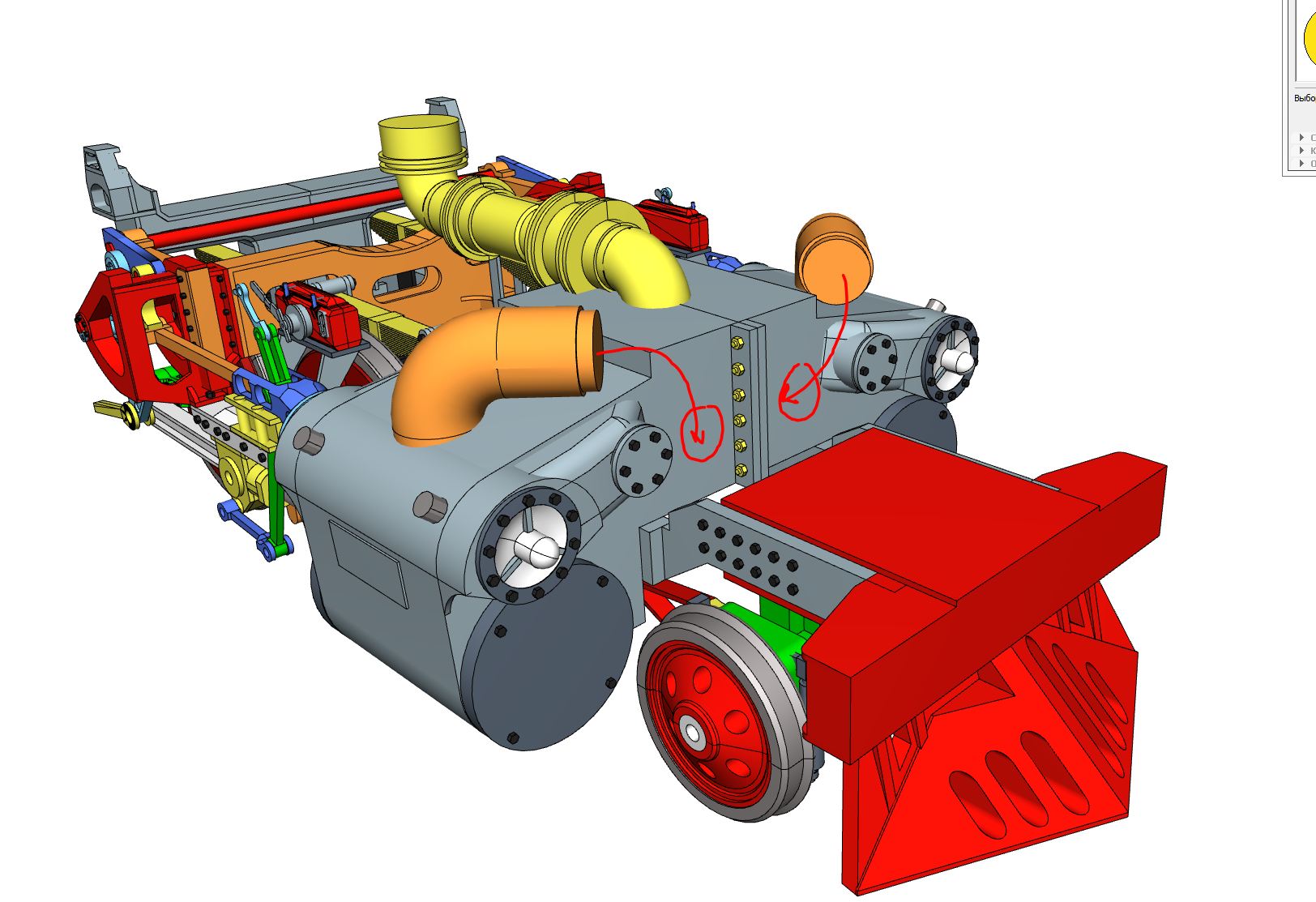 Ну, вроде паропроводы получились похожими на оригинал. Изменил передний блок цилиндров для пропуска трубы и параллели