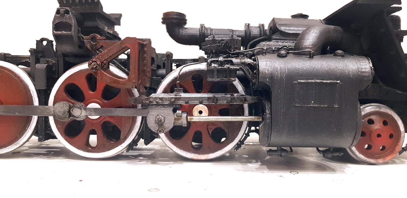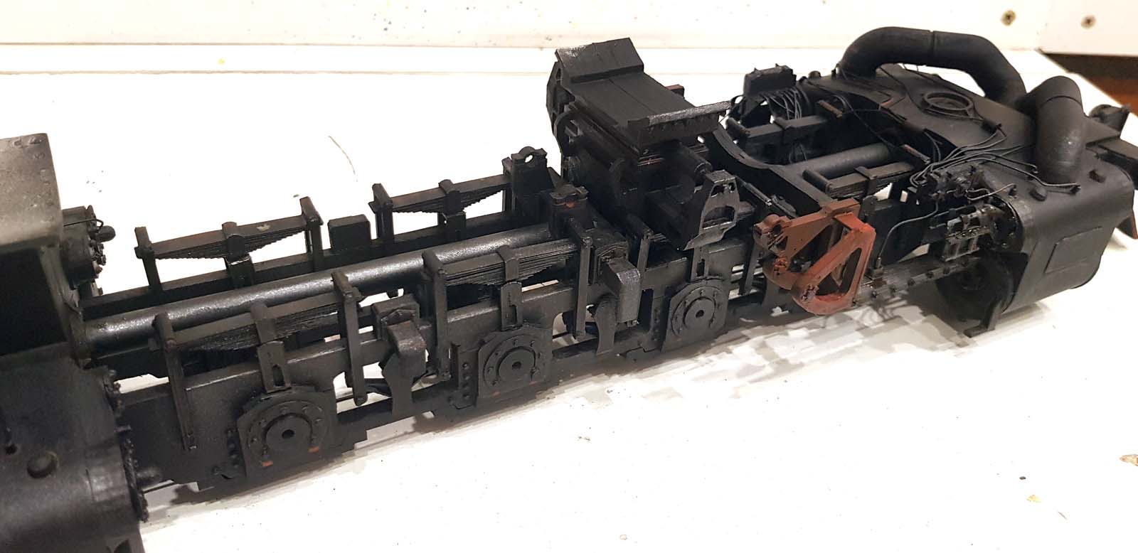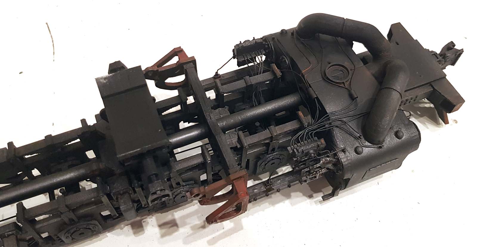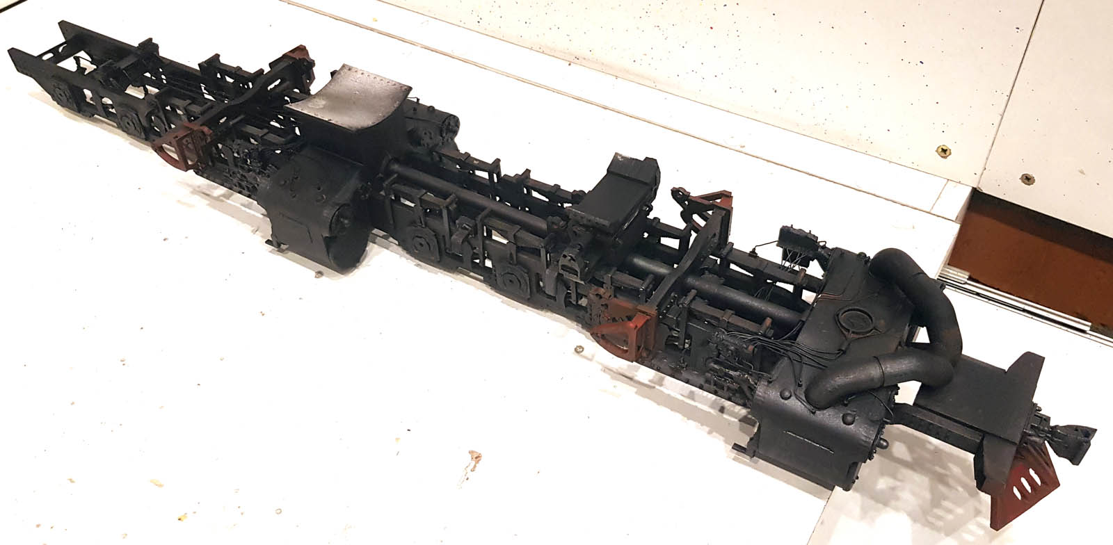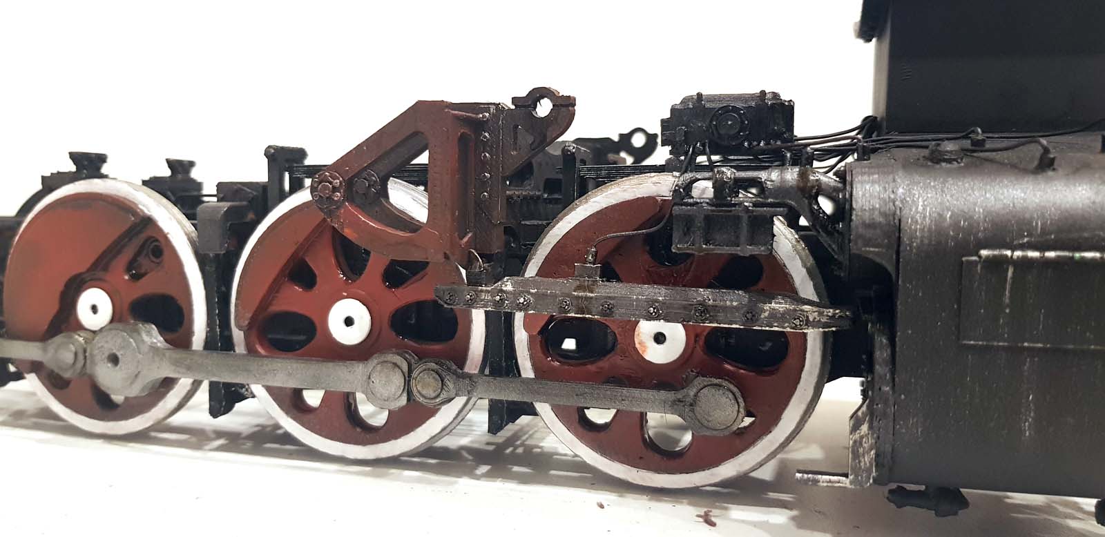 Доделал головной прожектор, установил магистрали подачи песка на переднюю машину, поставил дышла. Детально правый борт