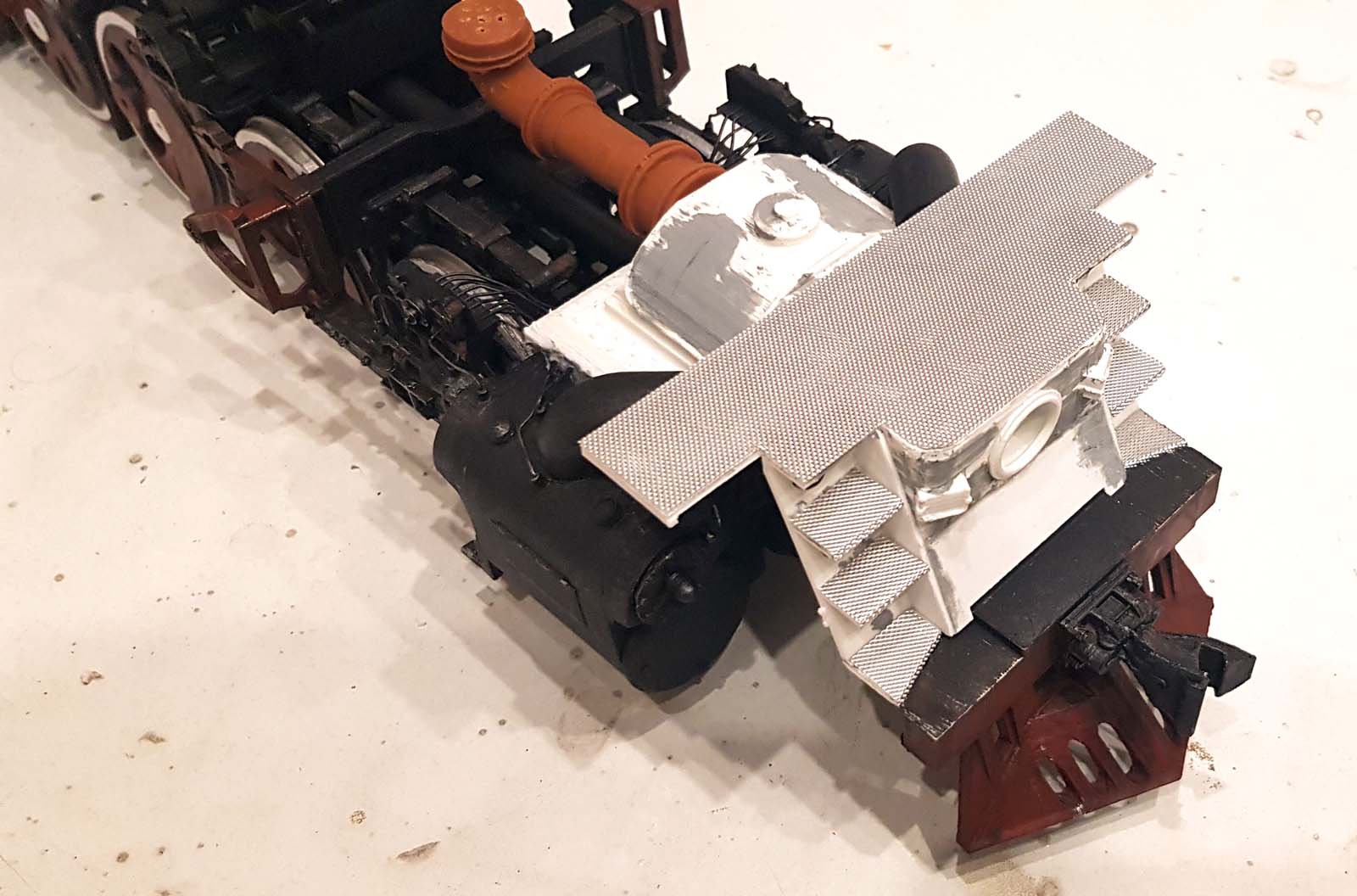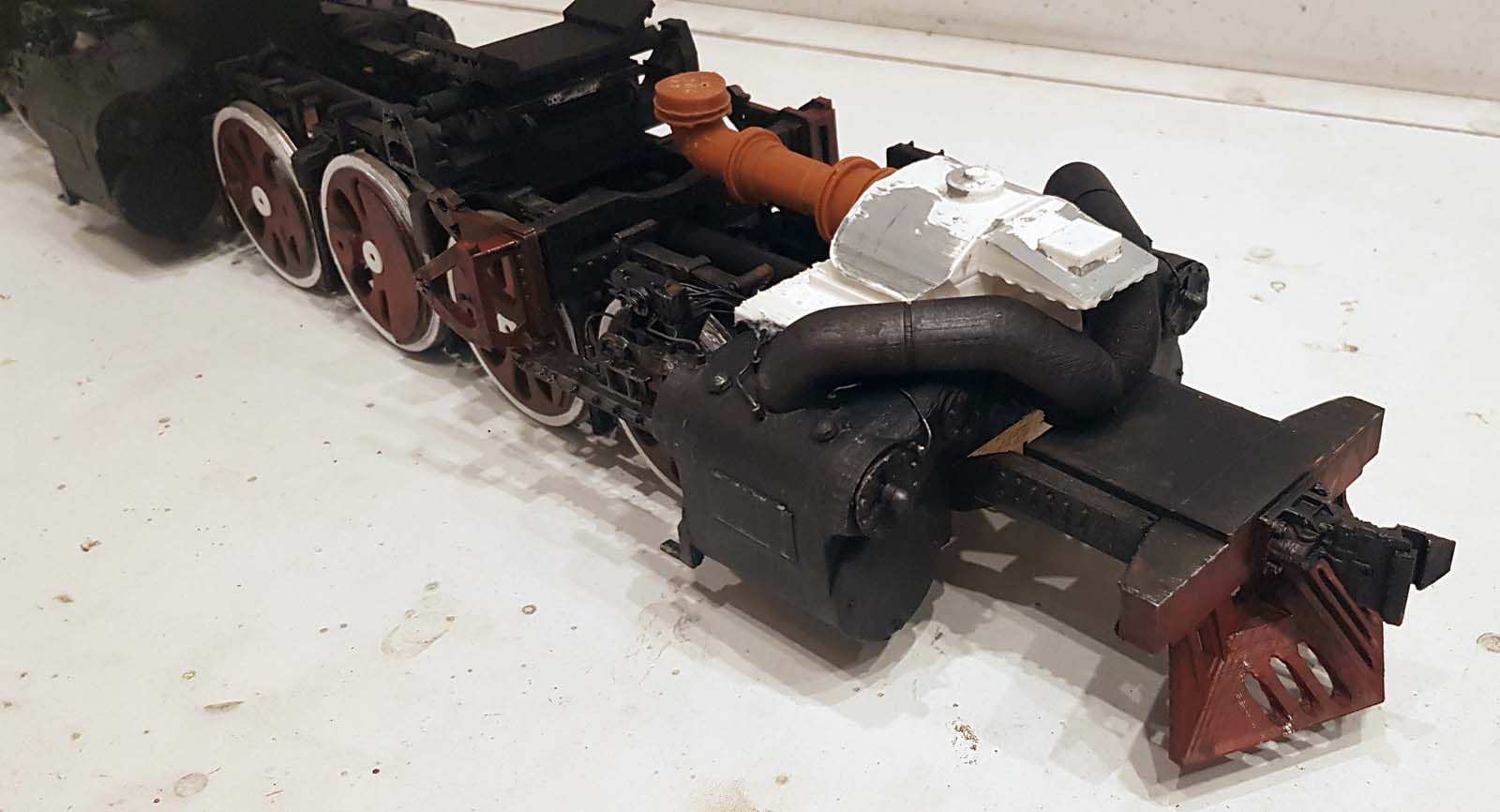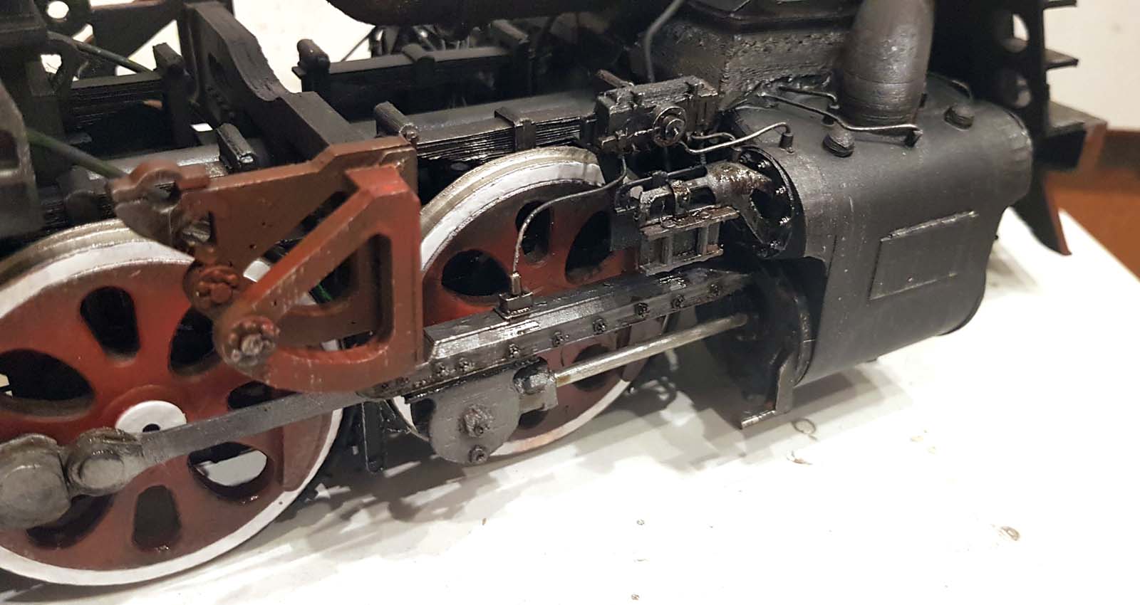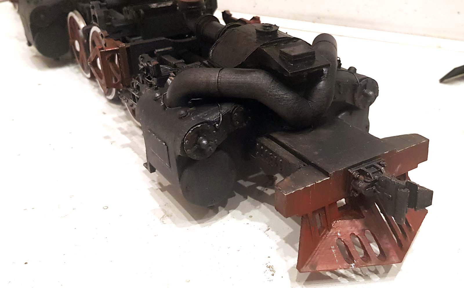 Доделал головной прожектор, установил магистрали подачи песка на переднюю машину, поставил дышла. Детально правый борт